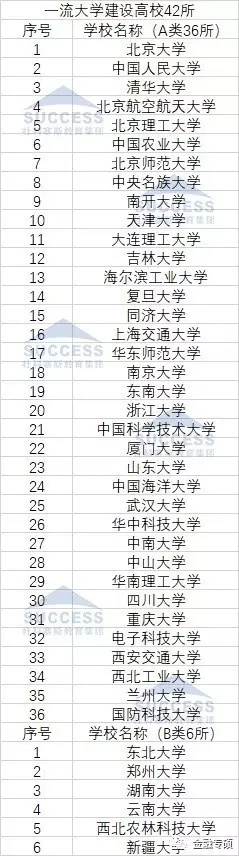 導讀:一流大學建設高校42所
