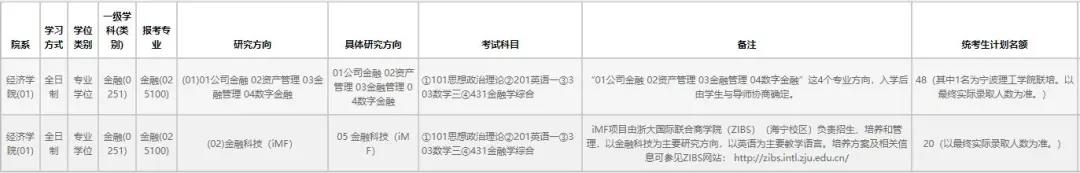 浙江大學(xué)2021年全日制金融專碩研究方向(01)01公司金融 02資產(chǎn)管理 03金融管理 04數(shù)字金融計(jì)劃招生48人研究方向(02)金融科技(iMF)計(jì)劃招生20人(不含推免)