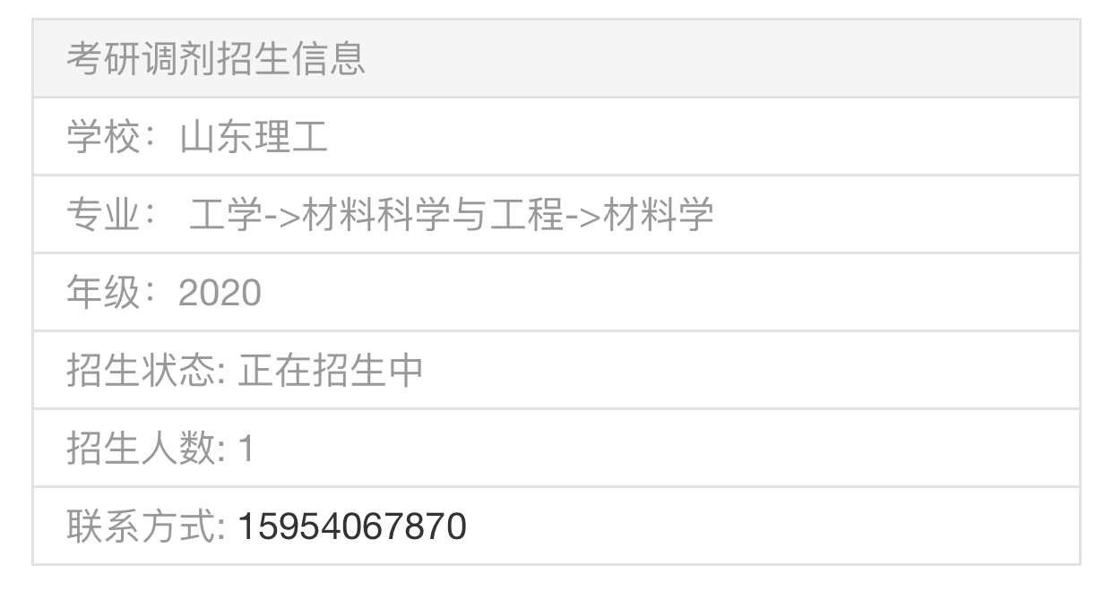 以上就是“2020考研調劑信息:山東理工大學王東課題組招收2020年材料、化學方向碩士調劑生”,的全部內容,2020考研全國調劑綜合服務平臺正式上線!三大功能亮點,幫你輕松調劑!