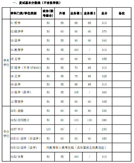 一、復(fù)試基本分?jǐn)?shù)線(不含醫(yī)學(xué)院)