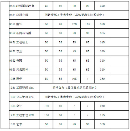 同教育部 A 類考生線(具體要求見院系規(guī)定)