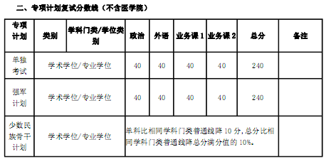 二、專項計劃復(fù)試分?jǐn)?shù)線(不含醫(yī)學(xué)院)