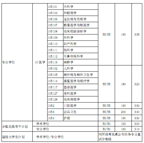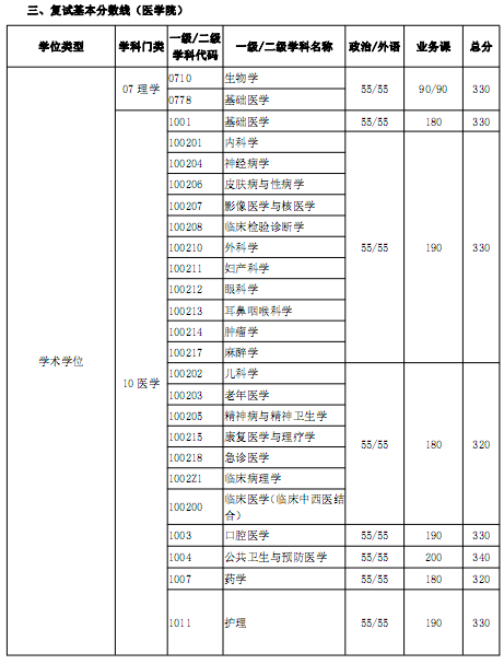 三、復(fù)試基本分?jǐn)?shù)線(醫(yī)學(xué)院)