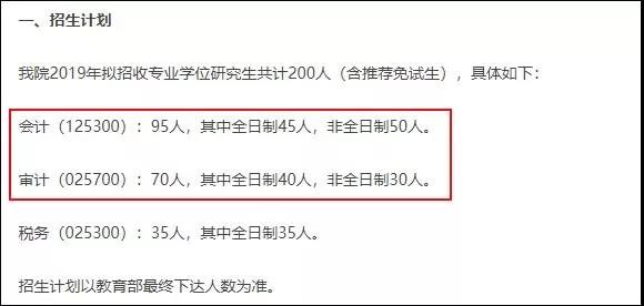 2019年全日制會計碩士計劃招生45人,學制2年,學費3.8萬/全程;非全日制計劃招生50人,學制3年,學費8萬元/全程;審計碩士計劃招生全日制40人,非全日制計劃招生30人,學制及學費同上。