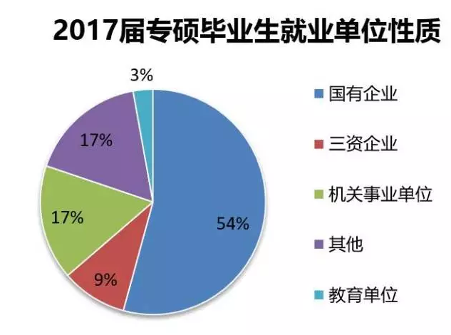 其次,按就業單位性質分類,過半的畢業生就業單位為國有企業;約17%的畢業生選擇機關事業單位,如公務員單位、研究院、醫院等;部分畢業生選擇三資企業,以四大會計師事務所為主。