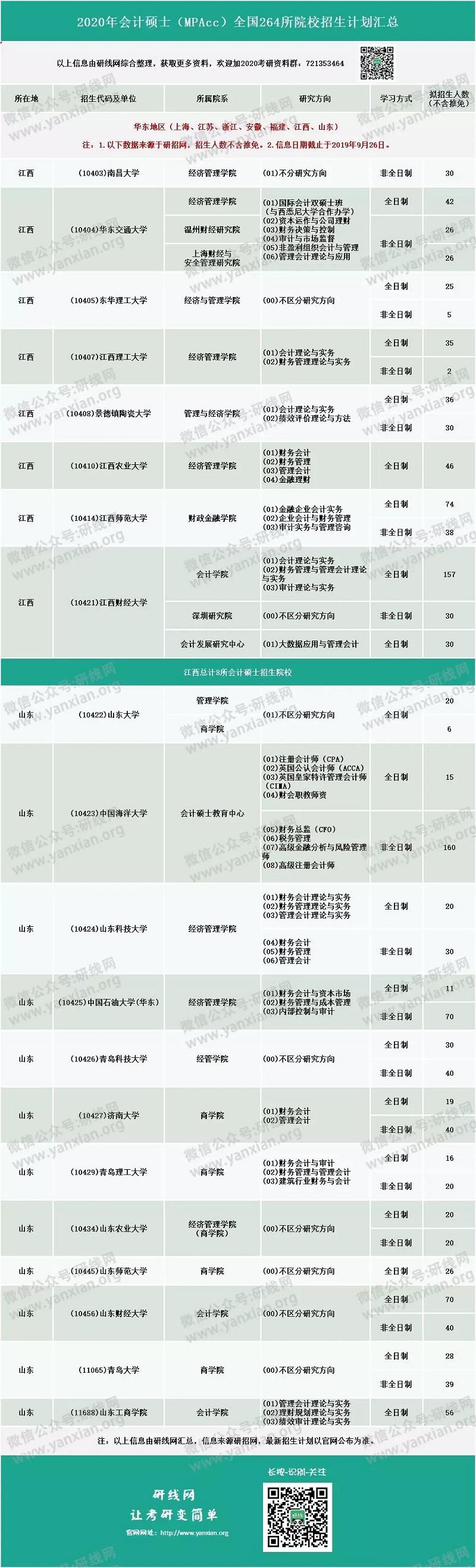 導(dǎo)讀:院校的招生人數(shù)作為擇校的重要參考之一,每年都牽動(dòng)了同學(xué)們的內(nèi)心,看過了四期院校招生人數(shù)信息,同學(xué)們的目標(biāo)院校招生人數(shù)有沒有增減呢?一起來看一下全國(guó)地區(qū)MPAcc院校2020年的招生信息連載的第四天:西北、華東地區(qū)(下)