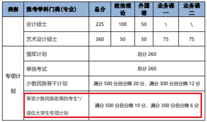1、參加“大學生志愿服務西部計劃”“三支一扶計劃”“農村義務教育階段學校教師特設崗位計劃”“赴外漢語教師志愿者”等項目服務期滿、考核合格的考生,3年內參加全國碩士研究生招生考試的,初試總分加10分,同等條件下優先錄取。