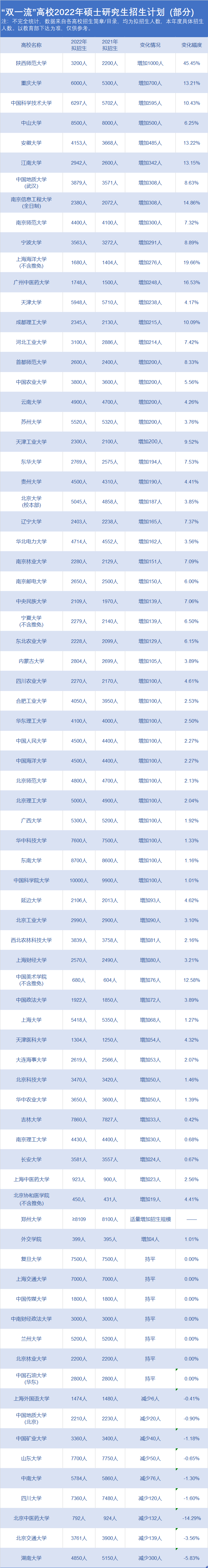 22考研er們除了需要關注今年的報名人數,對應院校的招生計劃也是需要我們了解的。22年有院校擴招,也有院校縮招,一起和小編看看吧~
