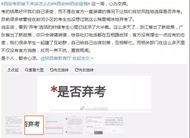 西安考研鬧上了熱搜,西安考研人紛紛表示,已經心力交瘁,甚至還出現了“是否棄考”的選項。這讓擔心疫情原因無法參加考試的考生,直接炸開了鍋。