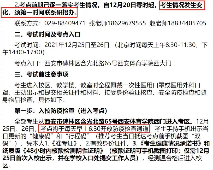 自12月20日零時起,考生情況發生變化,須第一時間聯系研招辦。
