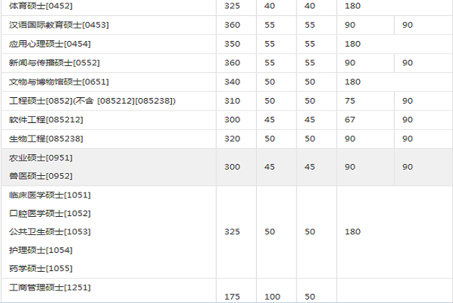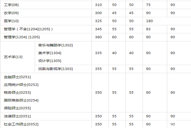 1.以上為按學(xué)科門(mén)類(lèi)(專(zhuān)業(yè))劃分的復(fù)試基本分?jǐn)?shù)線,業(yè)務(wù)課中括號(hào)內(nèi)分?jǐn)?shù)為統(tǒng)考科目或聯(lián)考科目復(fù)試線,此復(fù)試分?jǐn)?shù)線為參加我校復(fù)試的基本成績(jī)要求,各招生單位可在此基礎(chǔ)上確定本單位的復(fù)試分?jǐn)?shù)線。