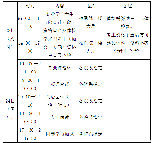 復試工作時間:3月23日-24日