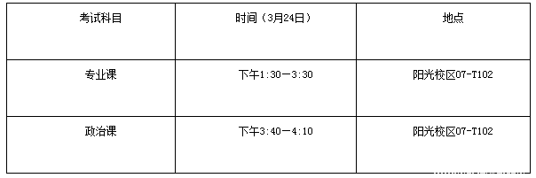 考生于3月25日上午8:00憑身份證原件及初試準(zhǔn)考證到陽光校區(qū)七號樓402室參加綜合面試。