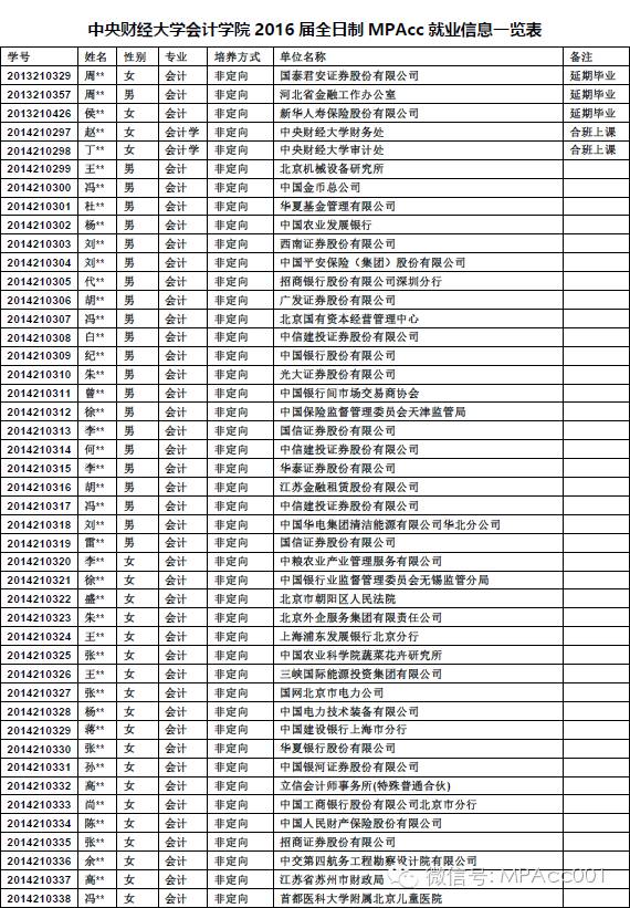 導語:中央財經大學大學會計學院自2004年成為全國首批具有“會計碩士專業學位(MPAcc)”辦學資格的院校以來,一共培養了2000多名會計專業人才。為了讓更多的人了解會計碩士教育項目,我們對外發布了2016屆全日制會計碩士畢業生就業情況。
