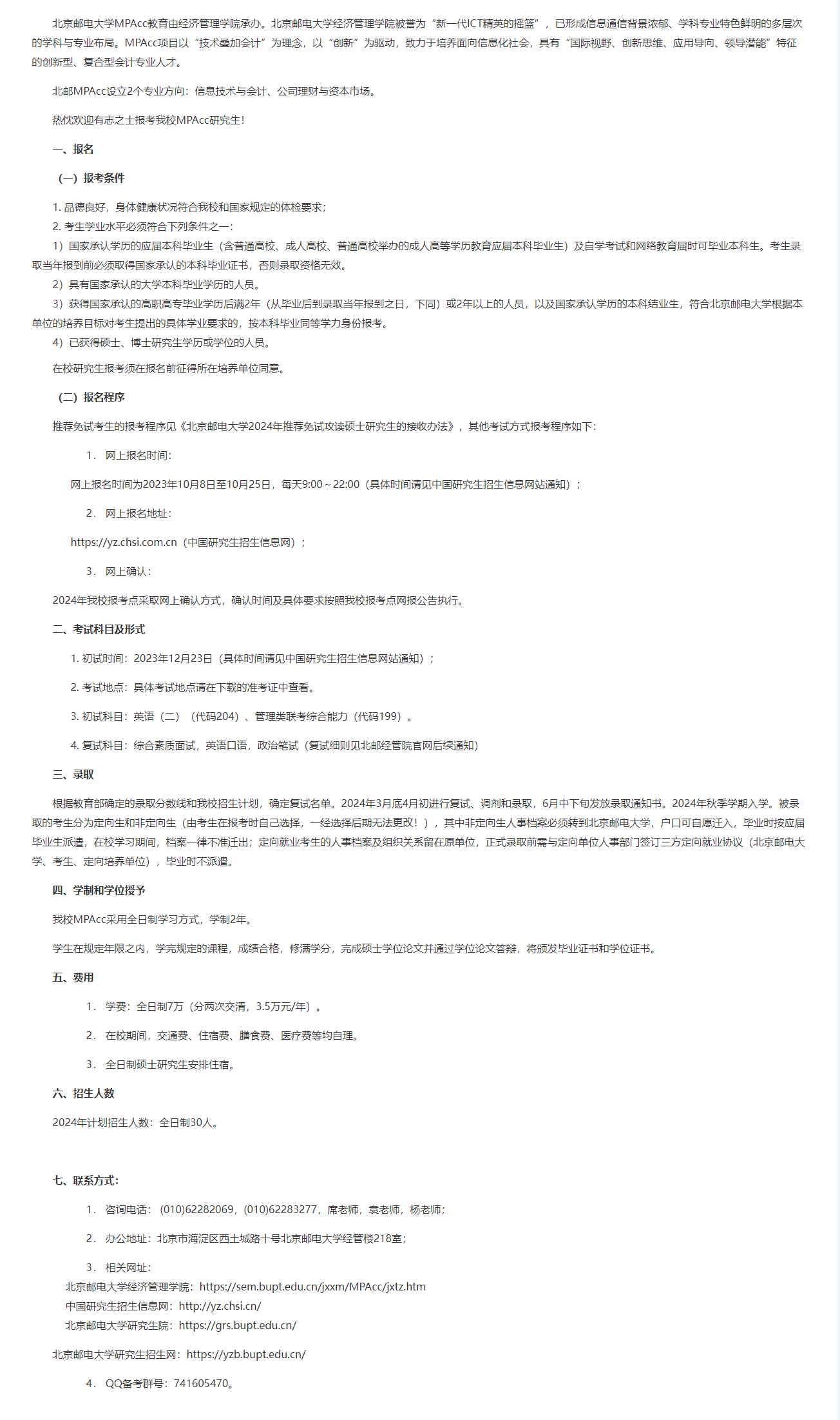 導讀:招生簡章是每年考研er需要關(guān)注的重要官方政策,一般情況下涵蓋了各個專業(yè)的報考條件、招生名額、學費、學制、報考流程等必要信息,為了幫助大家及時掌握一手信息,迅速做出報考應對,小編今天為大家?guī)砹恕?024MPAcc招生簡章:北京郵電大學2024年會計碩士(MPAcc)招生簡章”,一起關(guān)注一下吧!