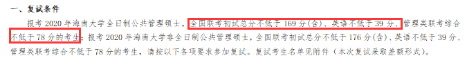 海南大學2020年MPA復試基本分數線:全日制169/78/39 非全日制176/78/39