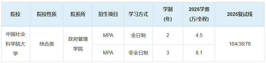 2025年中國社會科學院大學MPA復試分數線情況如下: