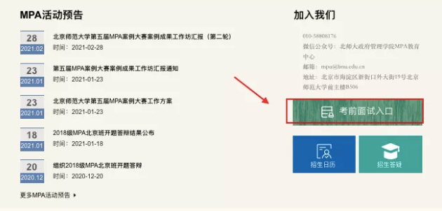登陸中心官網:https://mpa.bnu.edu.cn/ ,點擊考前面試入口進行登錄;