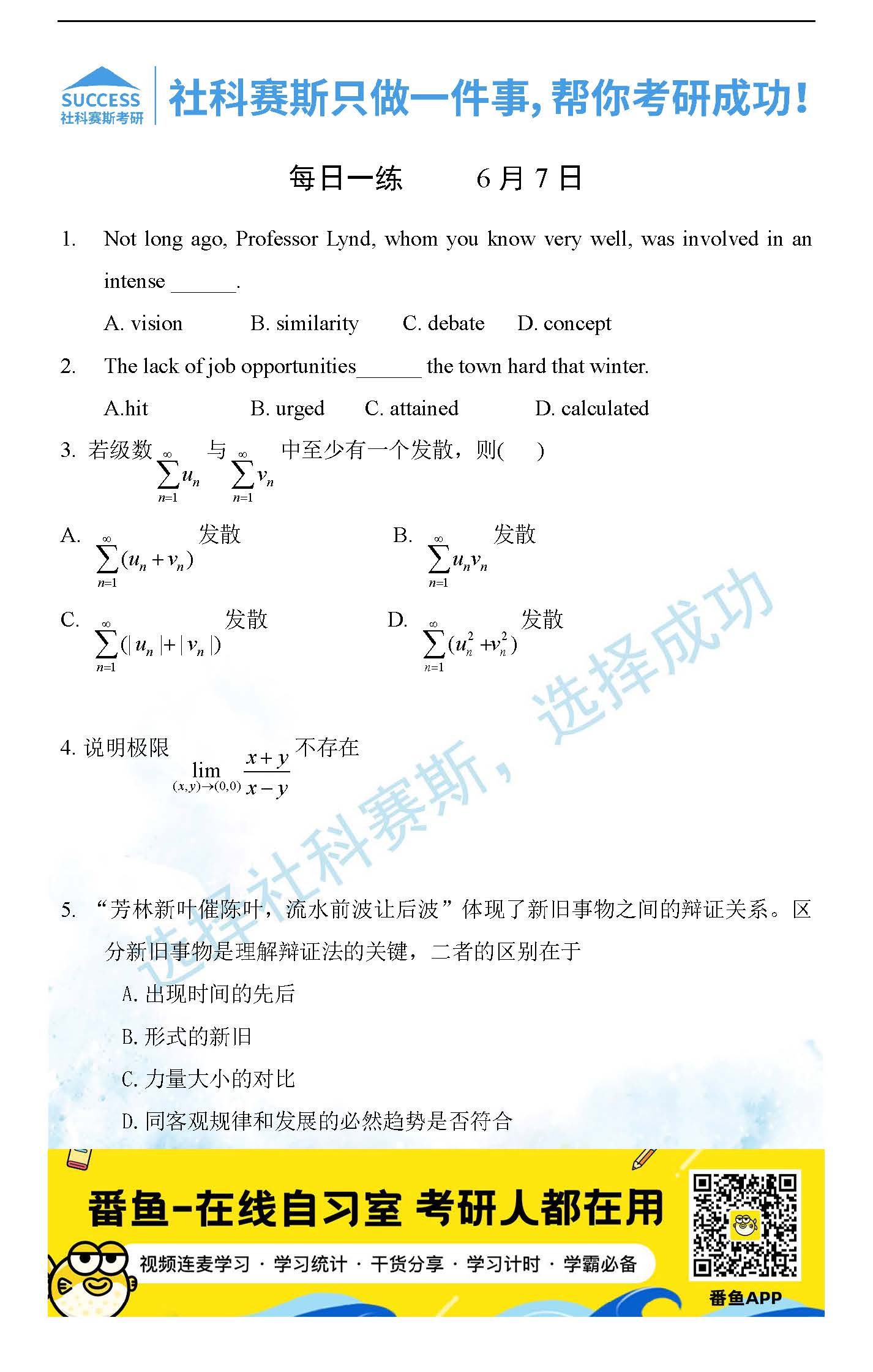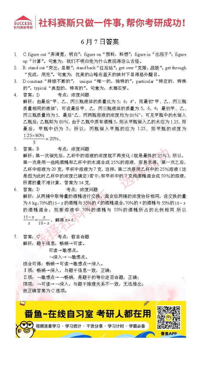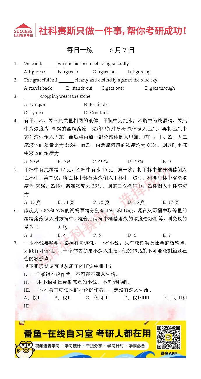 導讀:考研是一場持久戰,保持良好的學習習慣,是能確保復習高效的關鍵。今天社科賽斯MBA備考網小編整理了“2022管理類聯考6月7日每日一練及答案”的內容,希望能對廣大考生有所幫助。