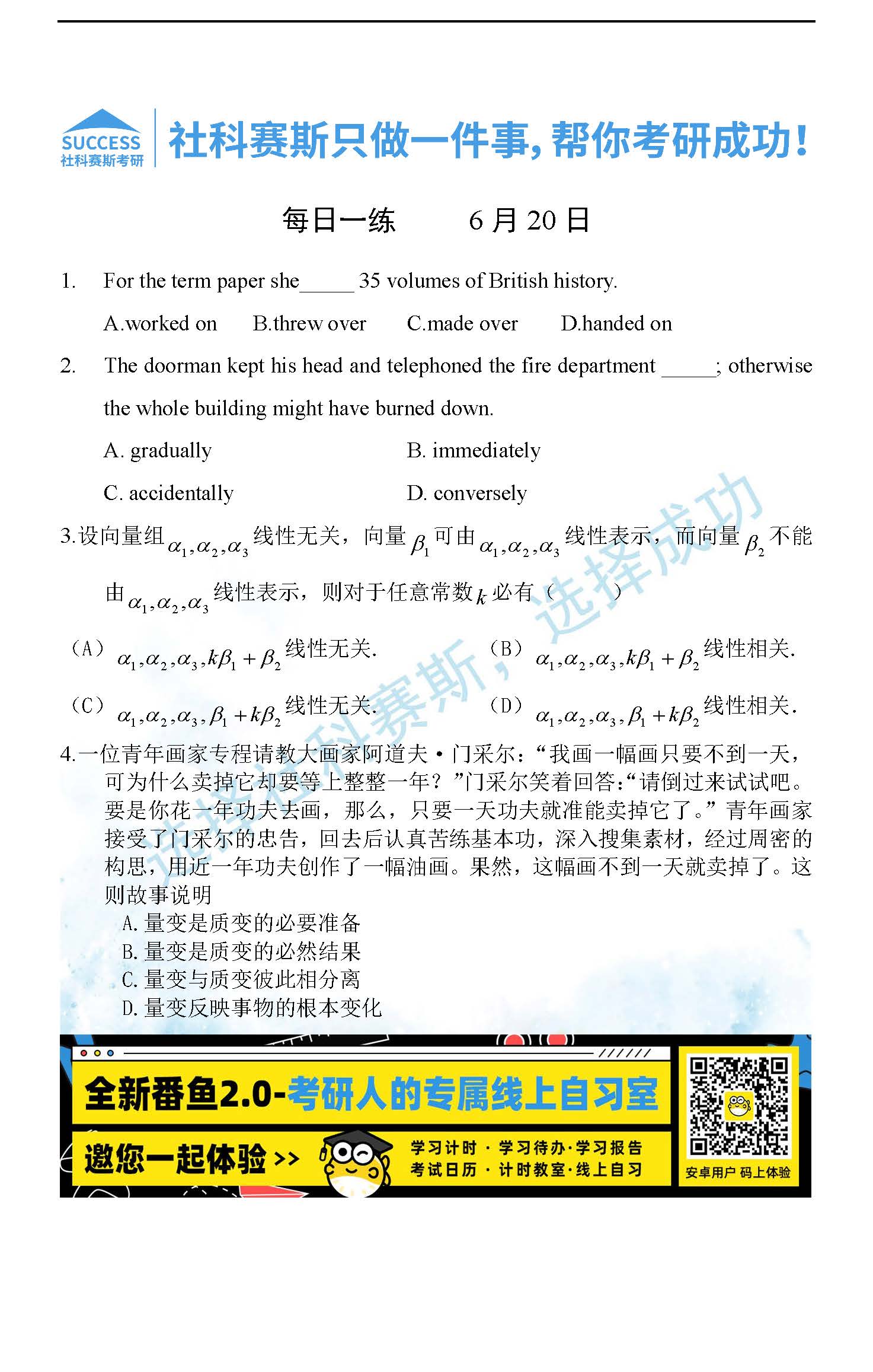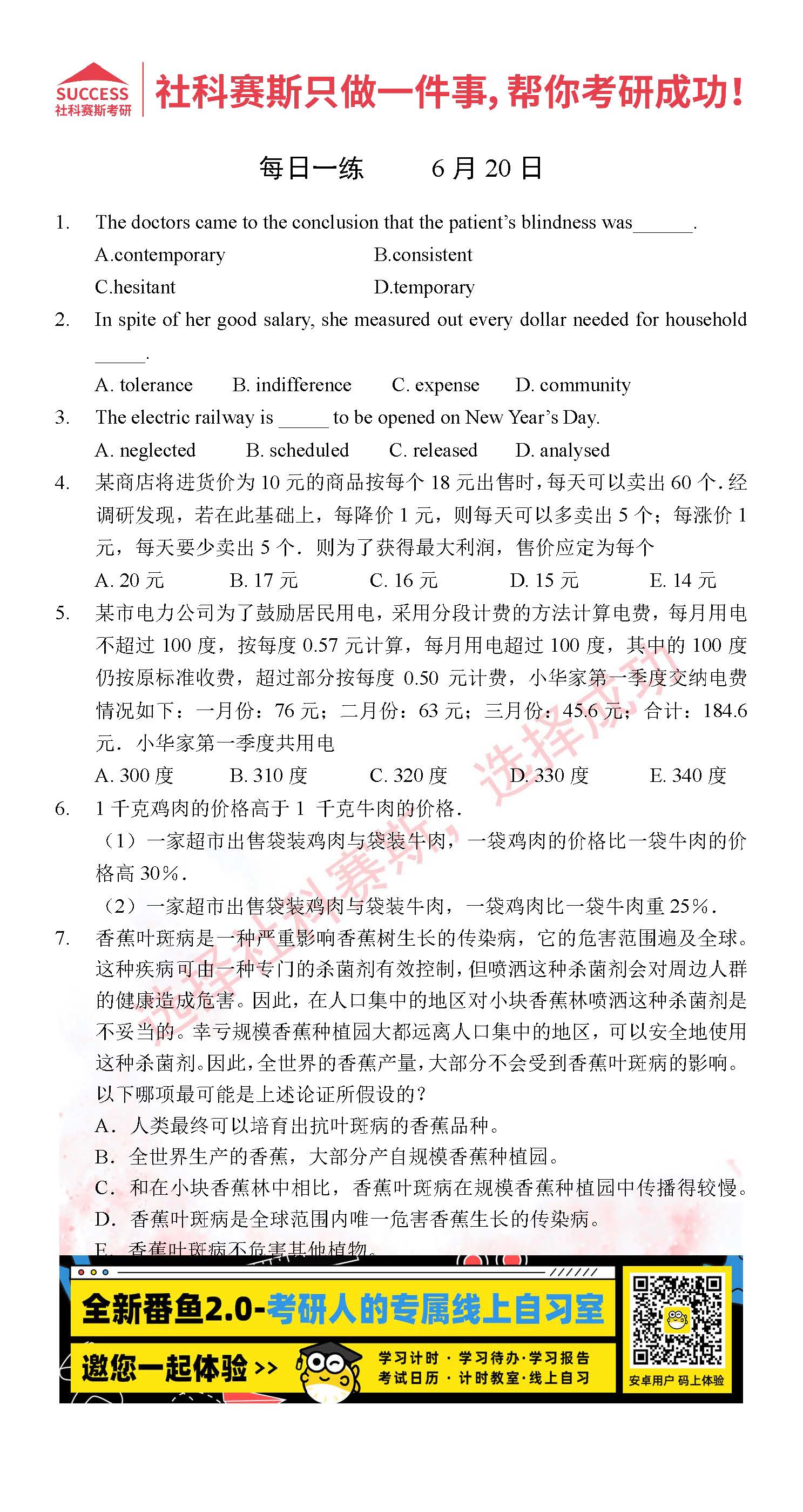 2022管理類聯(lián)考6月20日每日一練及答案”
