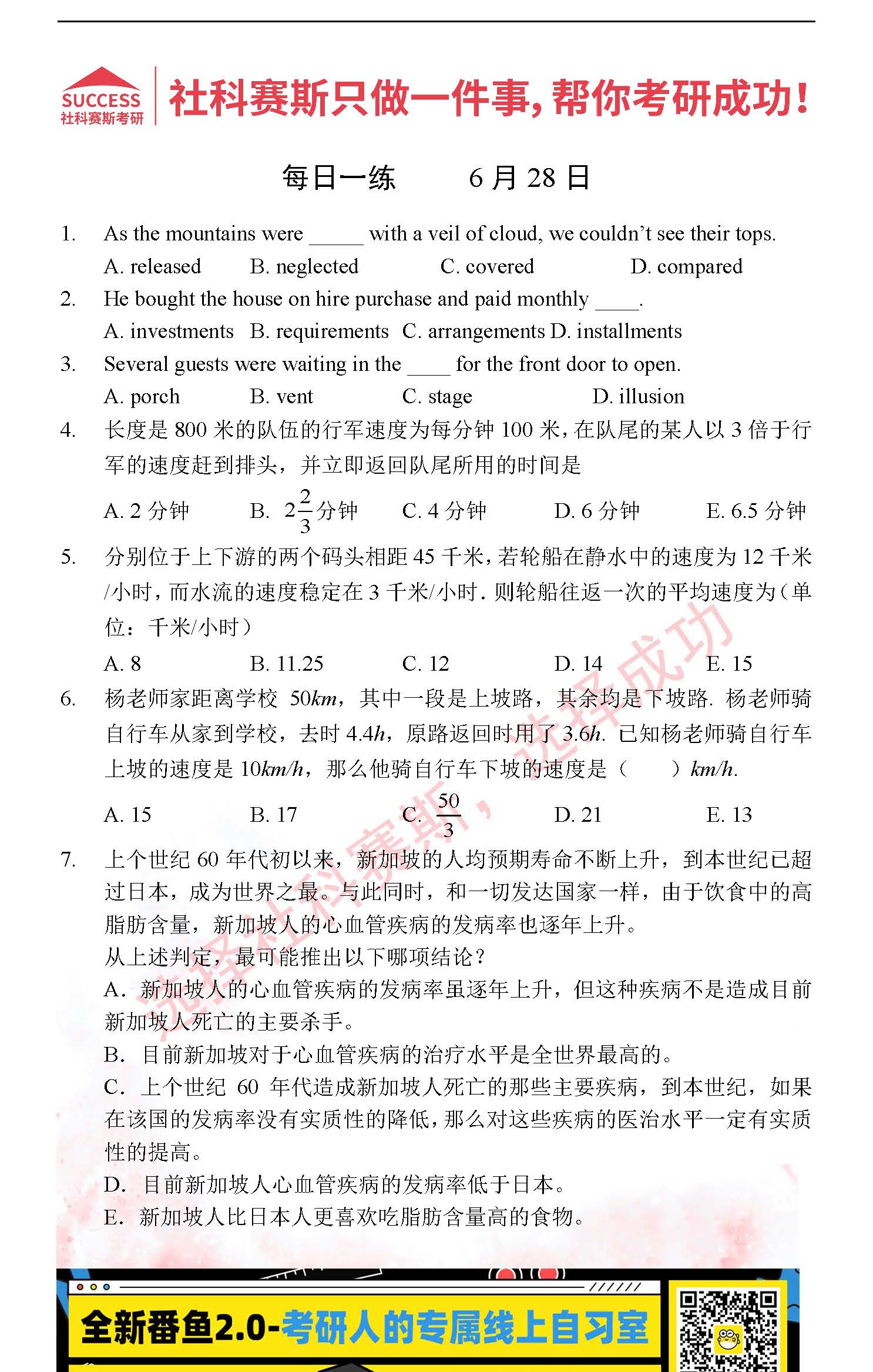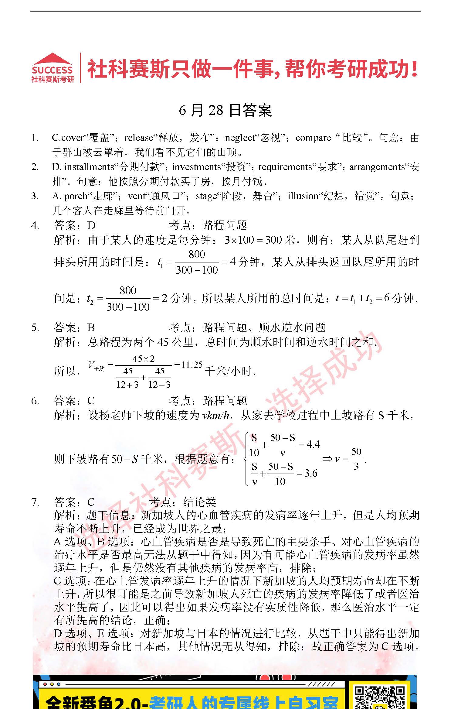 以上就是社科賽斯MBA備考網(wǎng)小編為大家整理“2022管理類聯(lián)考6月28日每日一練及答案”的全部?jī)?nèi)容,希望各位考生堅(jiān)持利用起來(lái),更多每日一練內(nèi)容請(qǐng)持續(xù)關(guān)注MBA備考網(wǎng)管理類聯(lián)考每日一練。