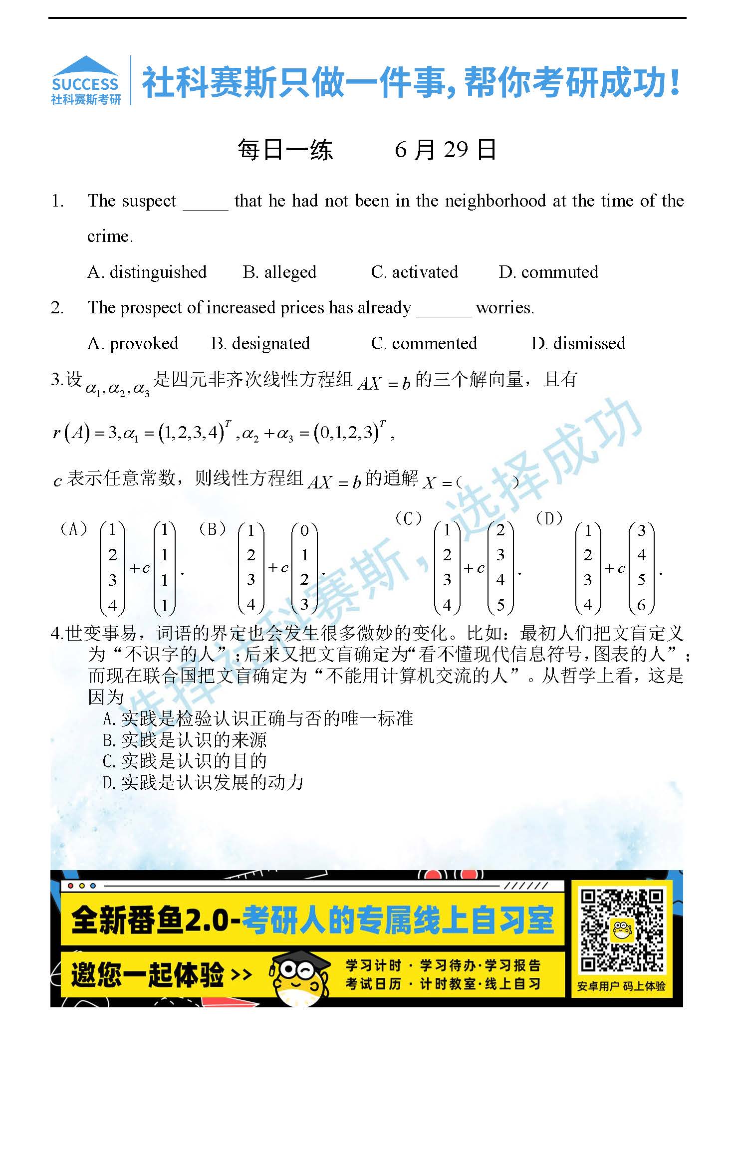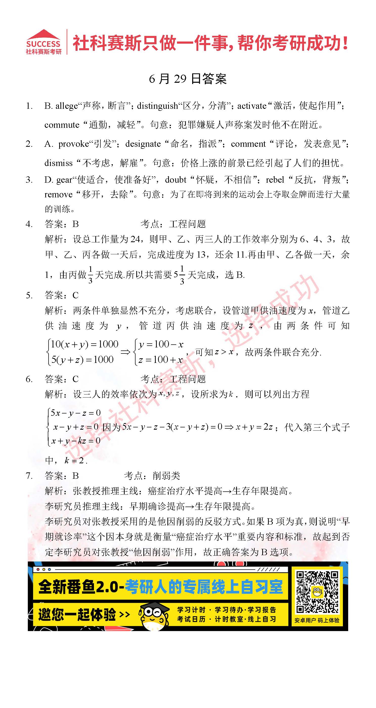導讀:考研是一場持久戰,保持良好的學習習慣,是能確保復習高效的關鍵。今天社科賽斯MBA備考網小編整理了“2022管理類聯考6月29日每日一練及答案”的內容,希望能對廣大考生有所幫助。