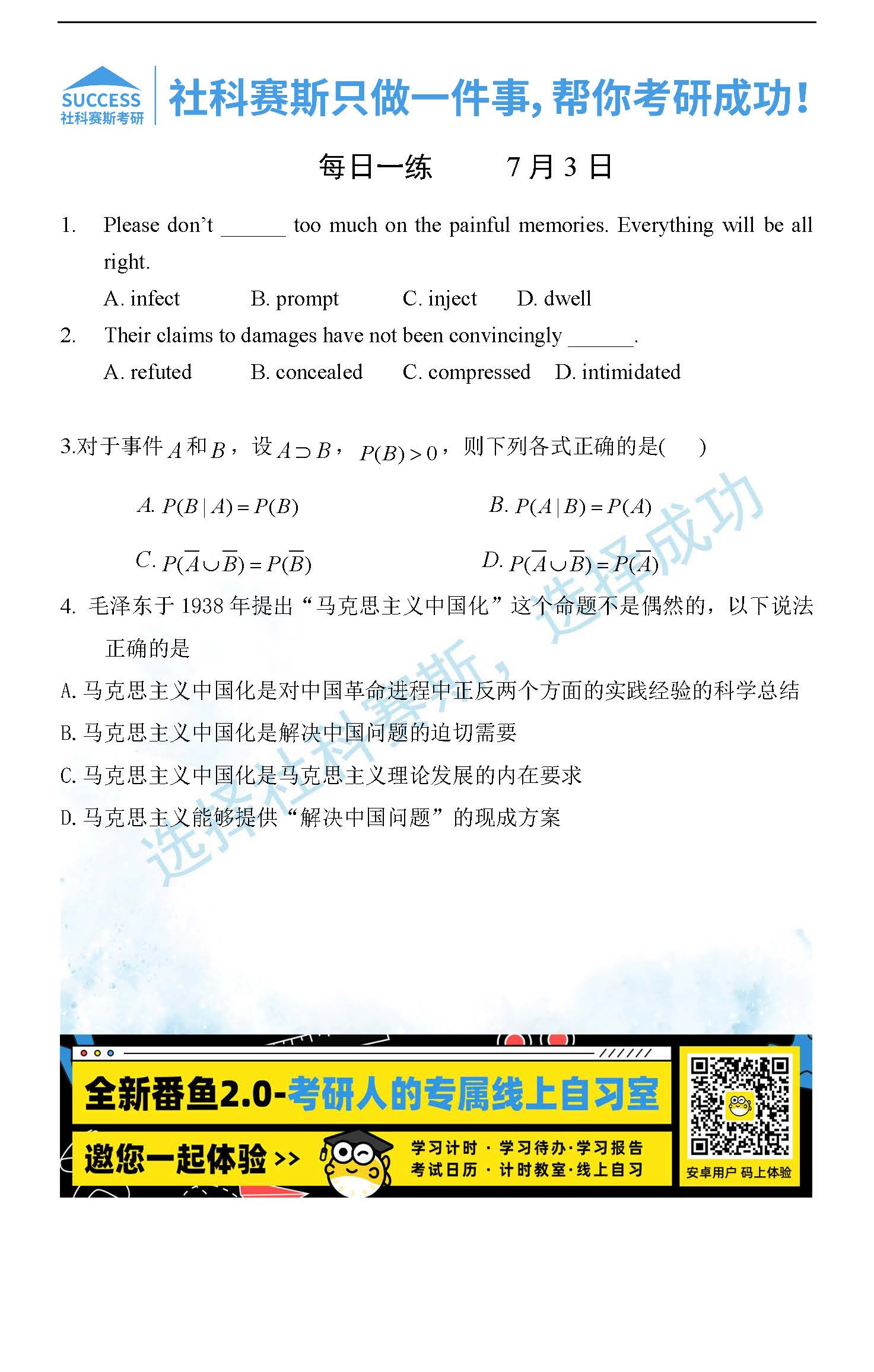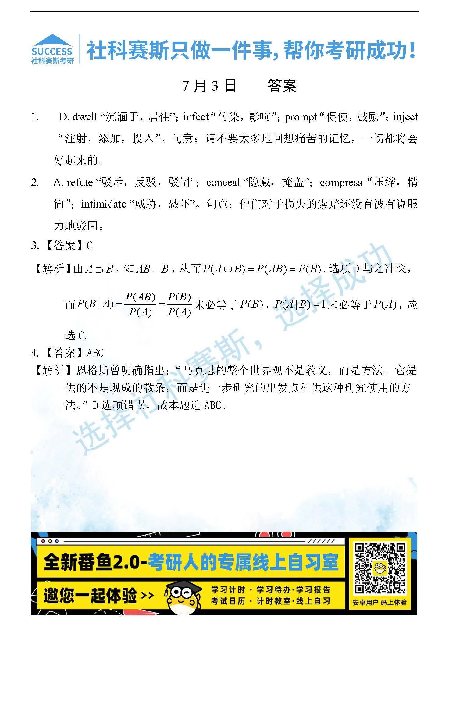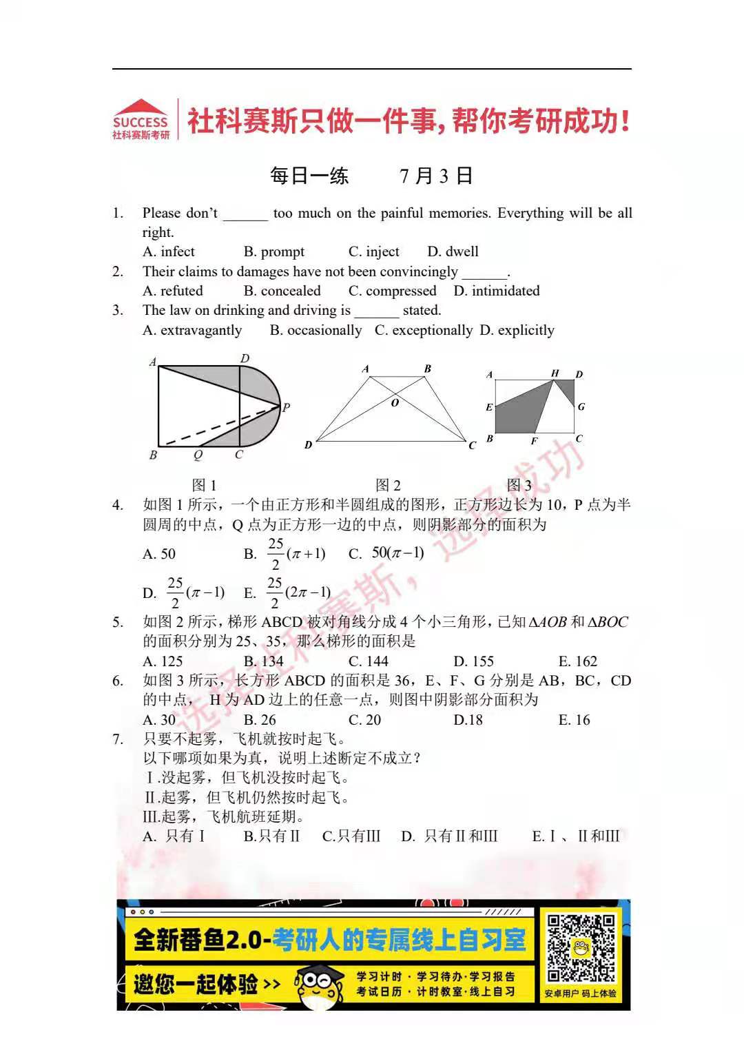 以上就是社科賽斯MBA備考網小編為大家整理2022管理類聯考7月3日每日一練及答案的全部內容,希望各位考生堅持利用起來,更多每日一練內容請持續關注MBA備考網管理類聯考每日一練。