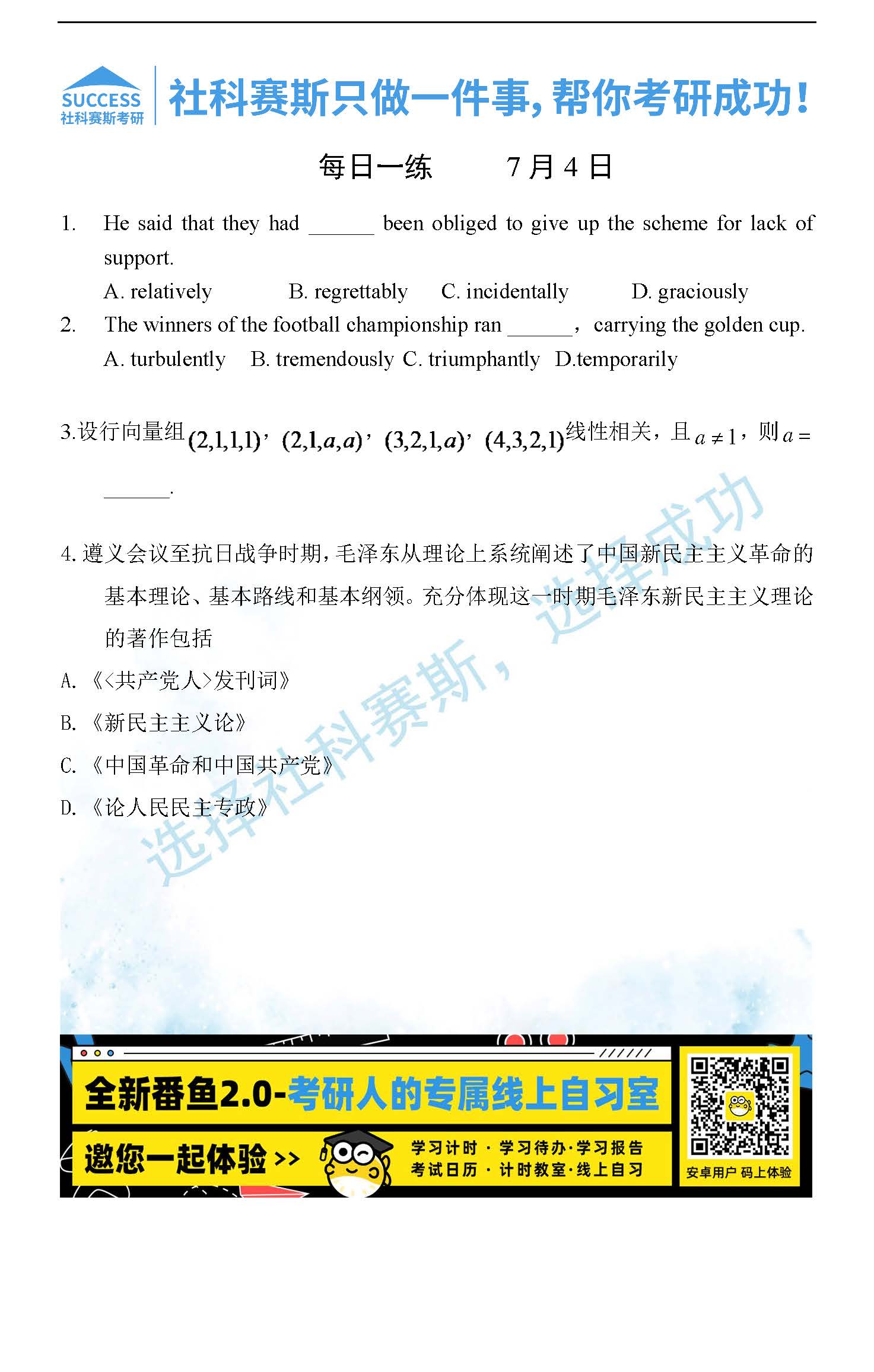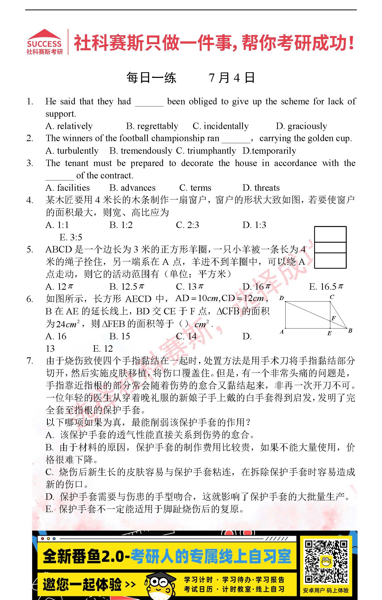 導讀:考研是一場持久戰,保持良好的學習習慣,是能確保復習高效的關鍵。今天社科賽斯MBA備考網小編整理了“2022管理類聯考7月4日每日一練及答案”的內容,希望能對廣大考生有所幫助。
