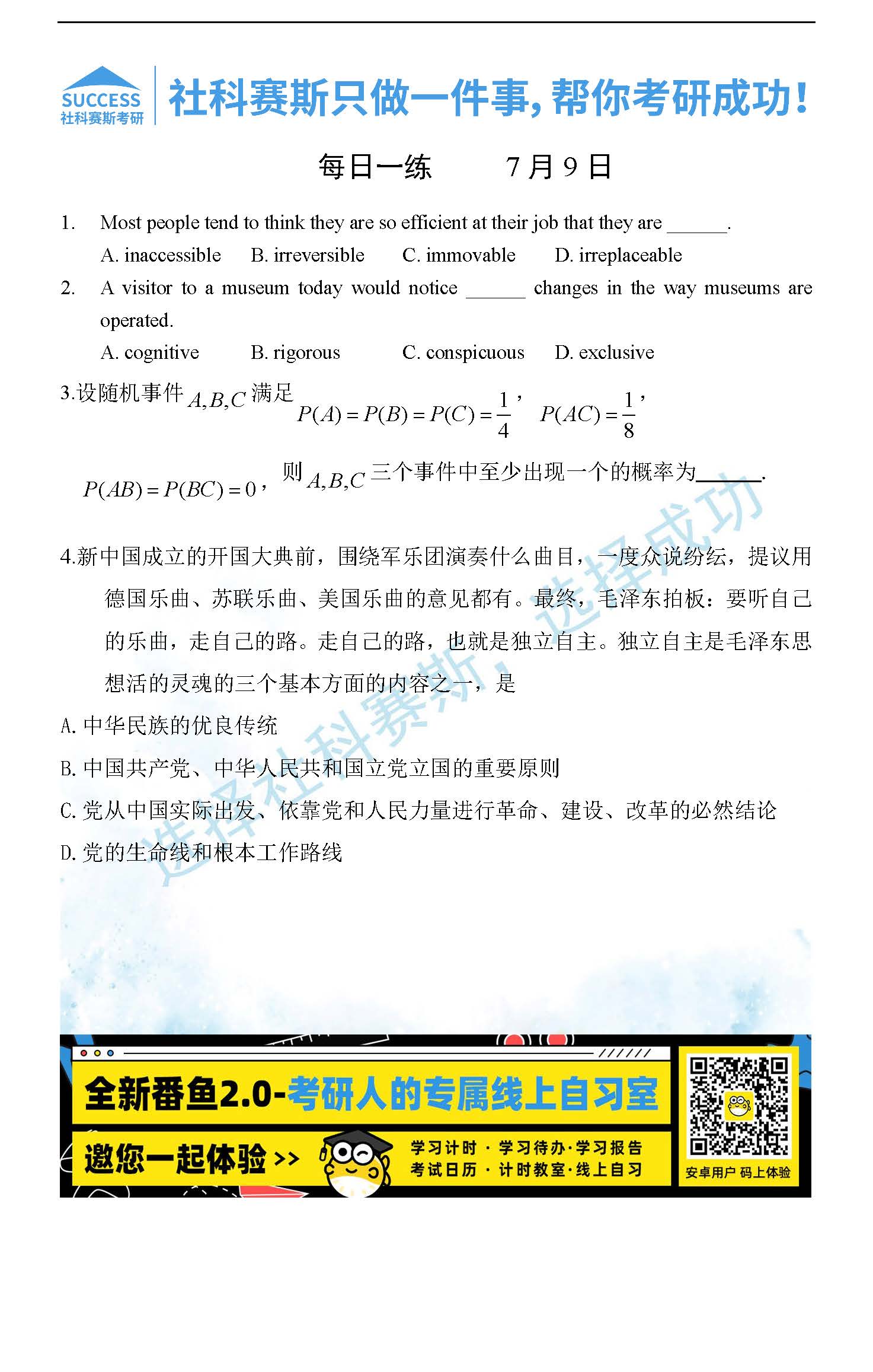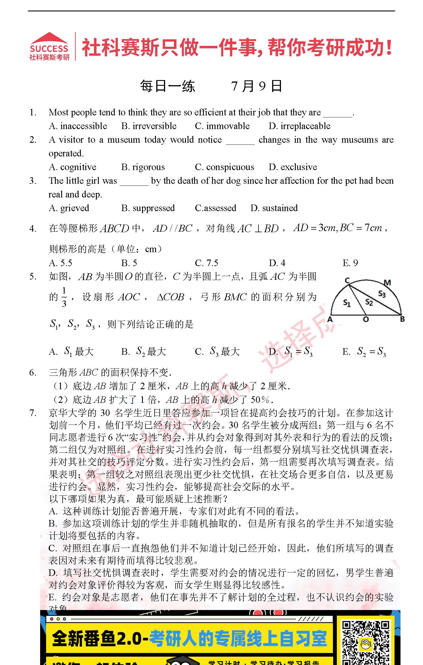 導(dǎo)讀:考研是一場持久戰(zhàn),保持良好的學(xué)習(xí)習(xí)慣,是能確保復(fù)習(xí)高效的關(guān)鍵。今天社科賽斯MBA備考網(wǎng)小編整理了“2022管理類聯(lián)考7月9日每日一練及答案”的內(nèi)容,希望能對廣大考生有所幫助。