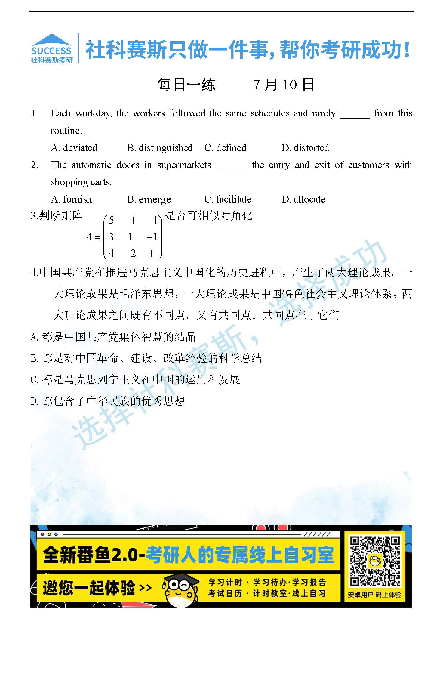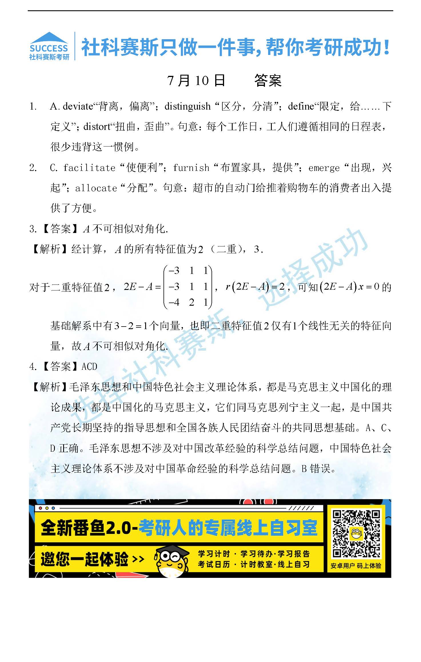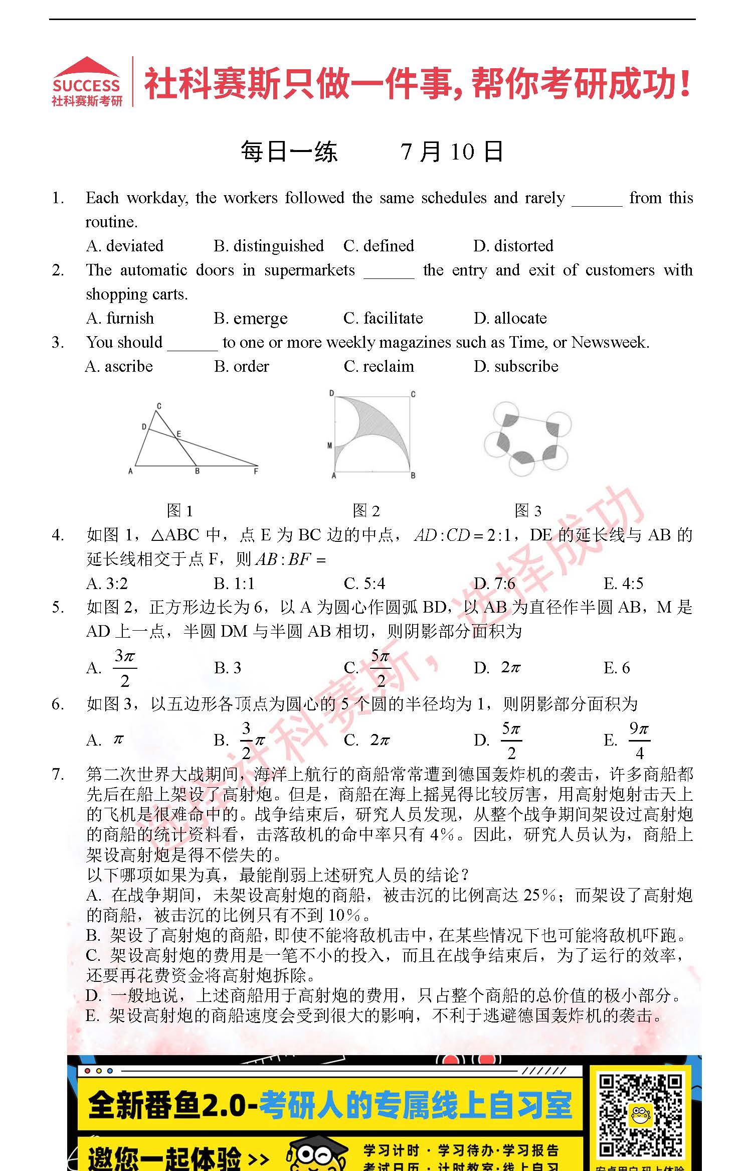 以上就是社科賽斯MBA備考網(wǎng)小編為大家整理“2022管理類聯(lián)考7月10日每日一練及答案”的全部內(nèi)容,希望各位考生堅持利用起來,更多每日一練內(nèi)容請持續(xù)關(guān)注MBA備考網(wǎng)管理類聯(lián)考每日一練。