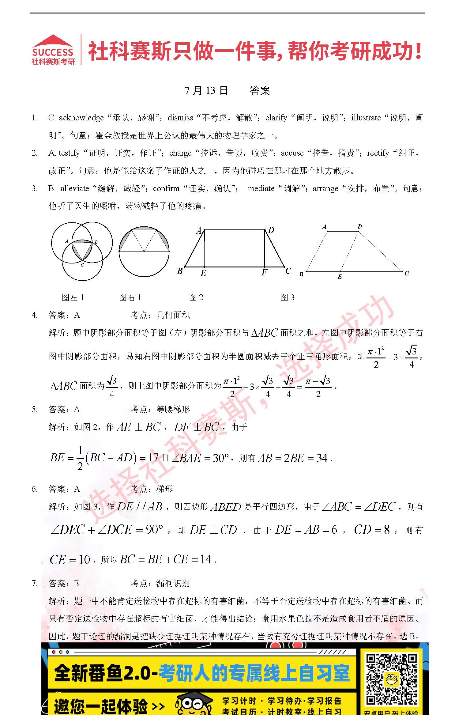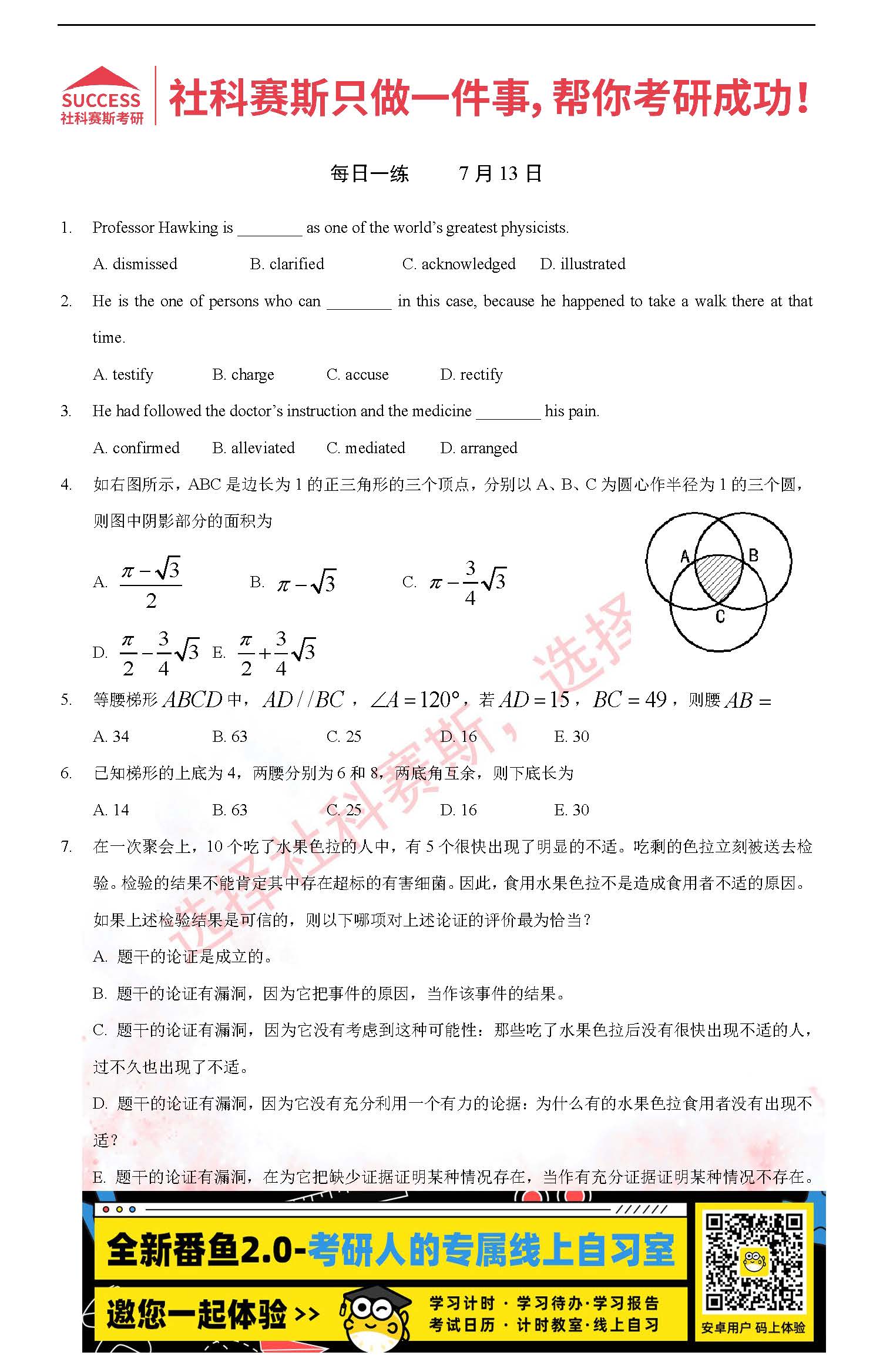 以上就是社科賽斯MBA備考網小編為大家整理“2022管理類聯考7月13日每日一練及答案”的全部內容,希望各位考生堅持利用起來,更多每日一練內容請持續關注MBA備考網管理類聯考每日一練。