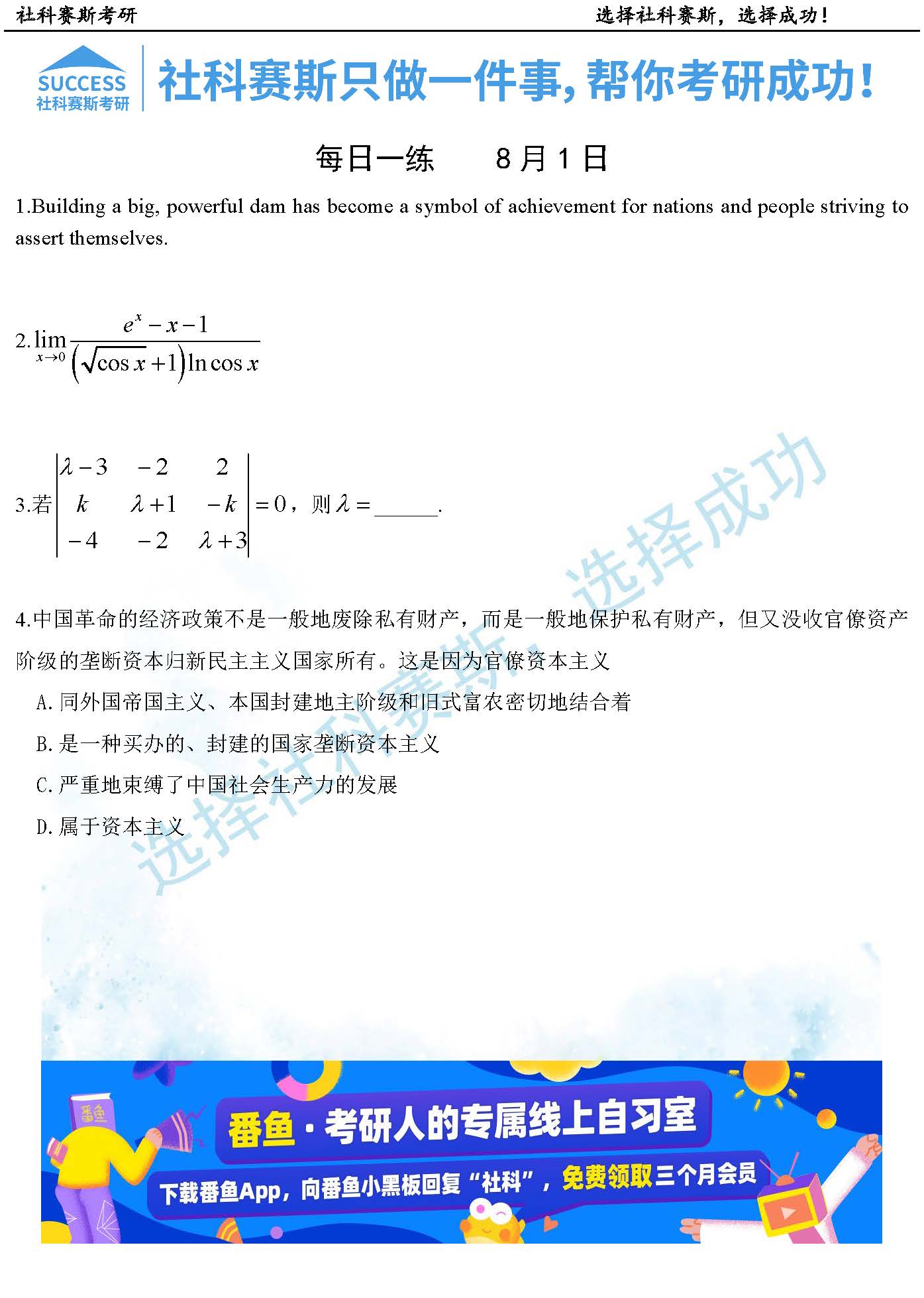 導讀:考研是一場持久戰,保持良好的學習習慣,是能確保復習高效的關鍵。今天社科賽斯MBA備考網小編整理了“2022管理類聯考8月1日每日一練及答案”的內容,希望能對廣大考生有所幫助。