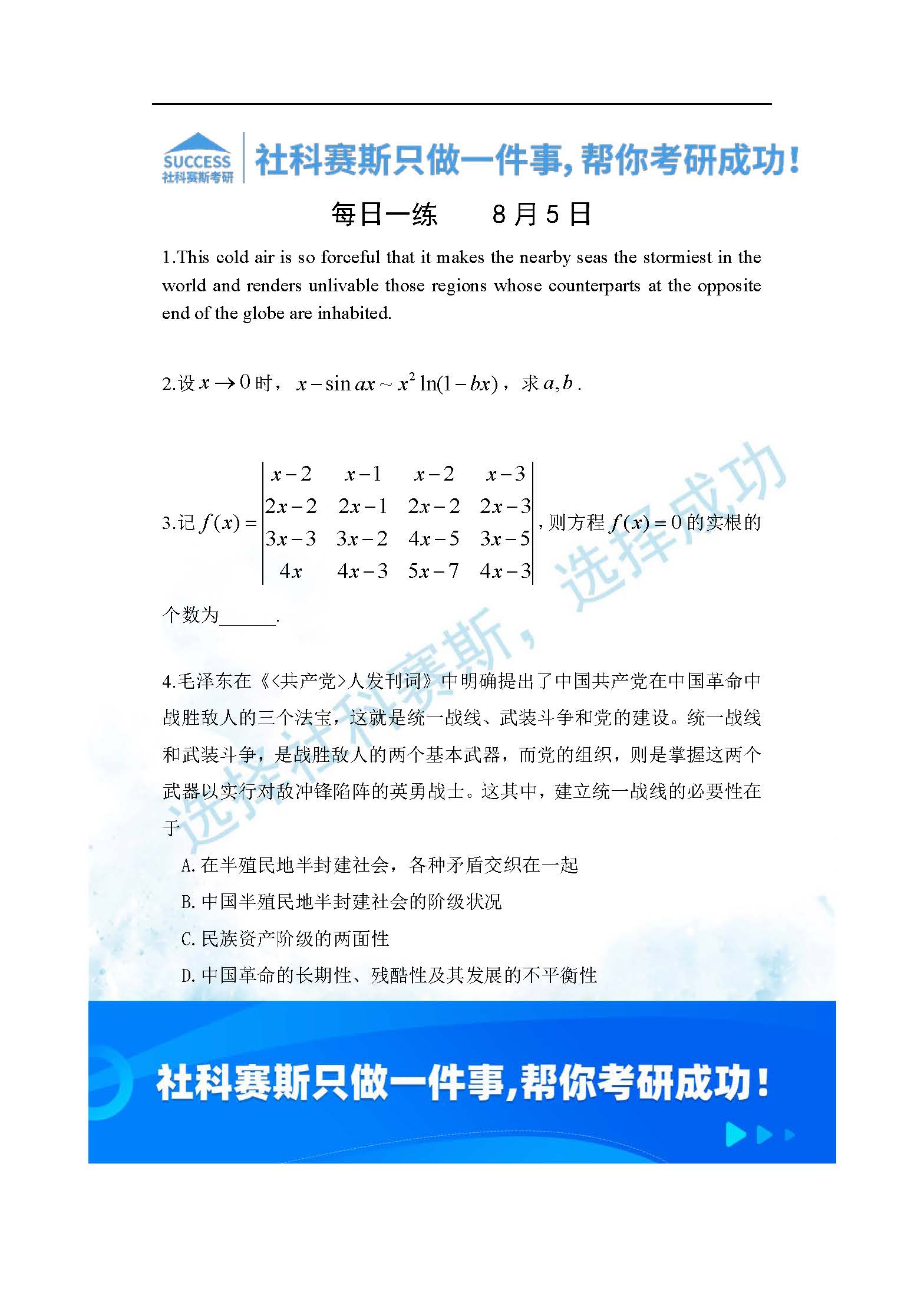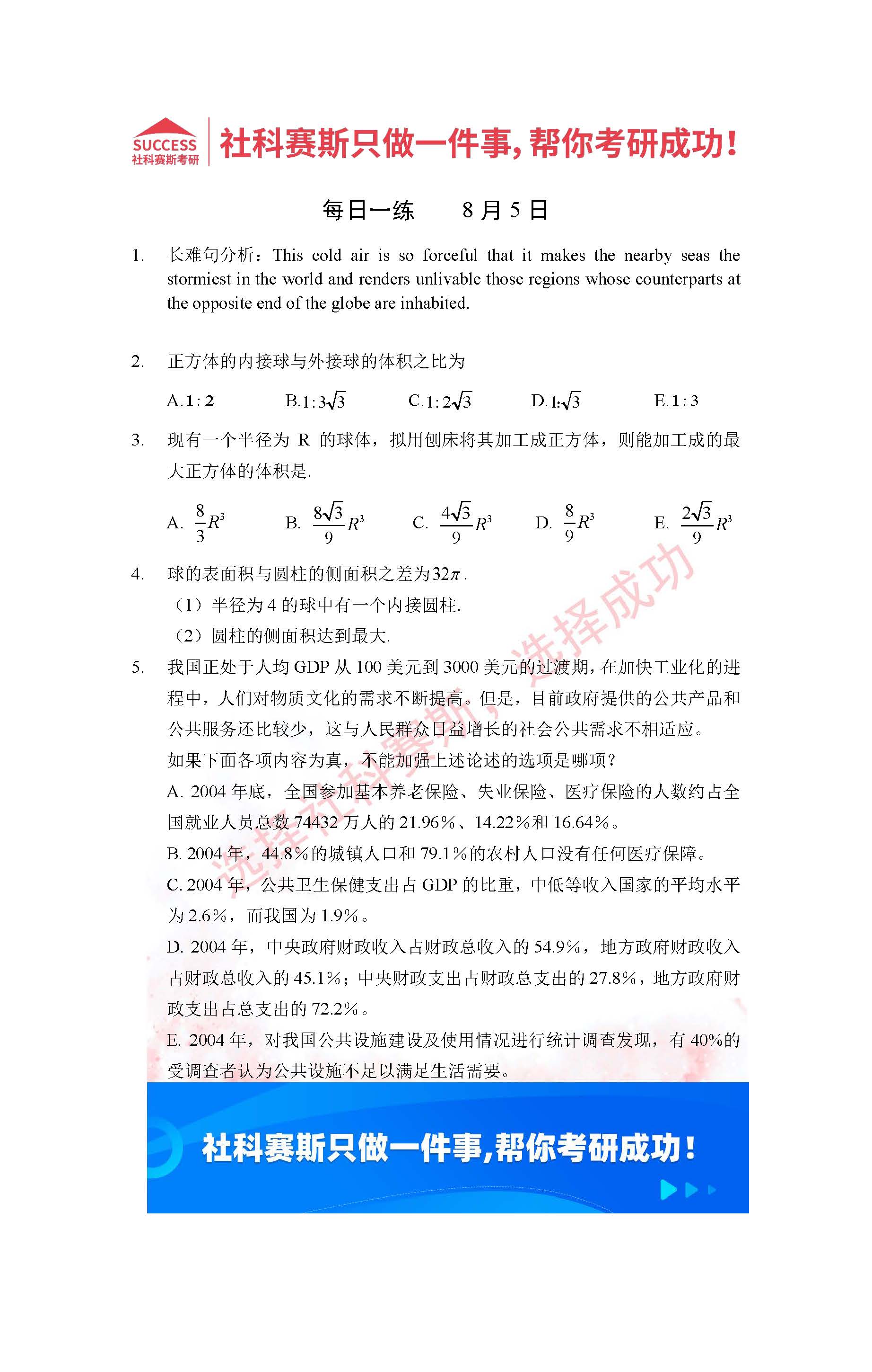 導讀:考研是一場持久戰,保持良好的學習習慣,是能確保復習高效的關鍵。今天社科賽斯MBA備考網小編整理了“2022管理類聯考8月5日每日一練及答案”的內容,希望能對廣大考生有所幫助。