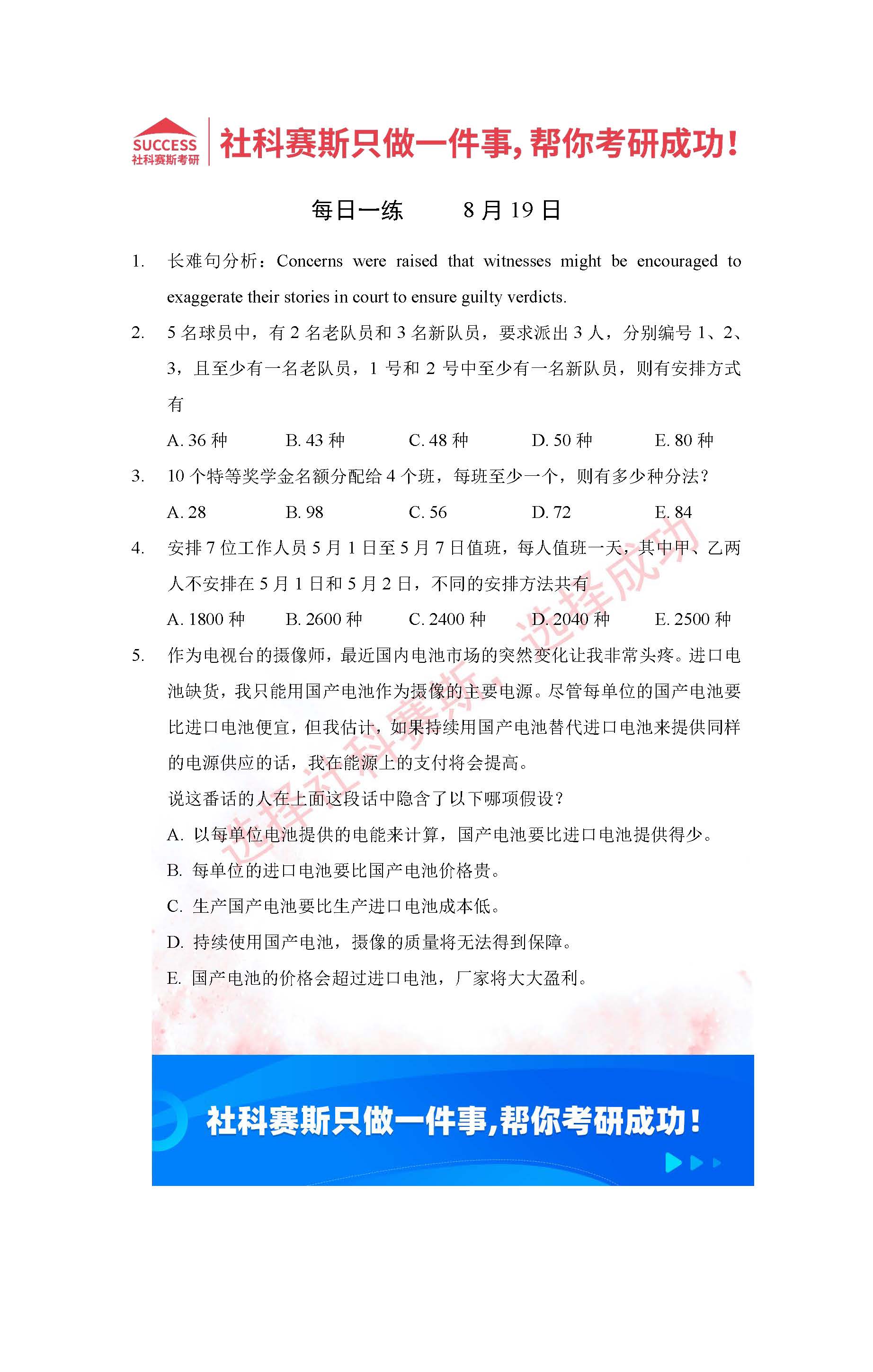 導讀:考研是一場持久戰,保持良好的學習習慣,是能確保復習高效的關鍵。今天社科賽斯MBA備考網小編整理了“2022管理類聯考8月19日每日一練及答案”的內容,希望能對廣大考生有所幫助。