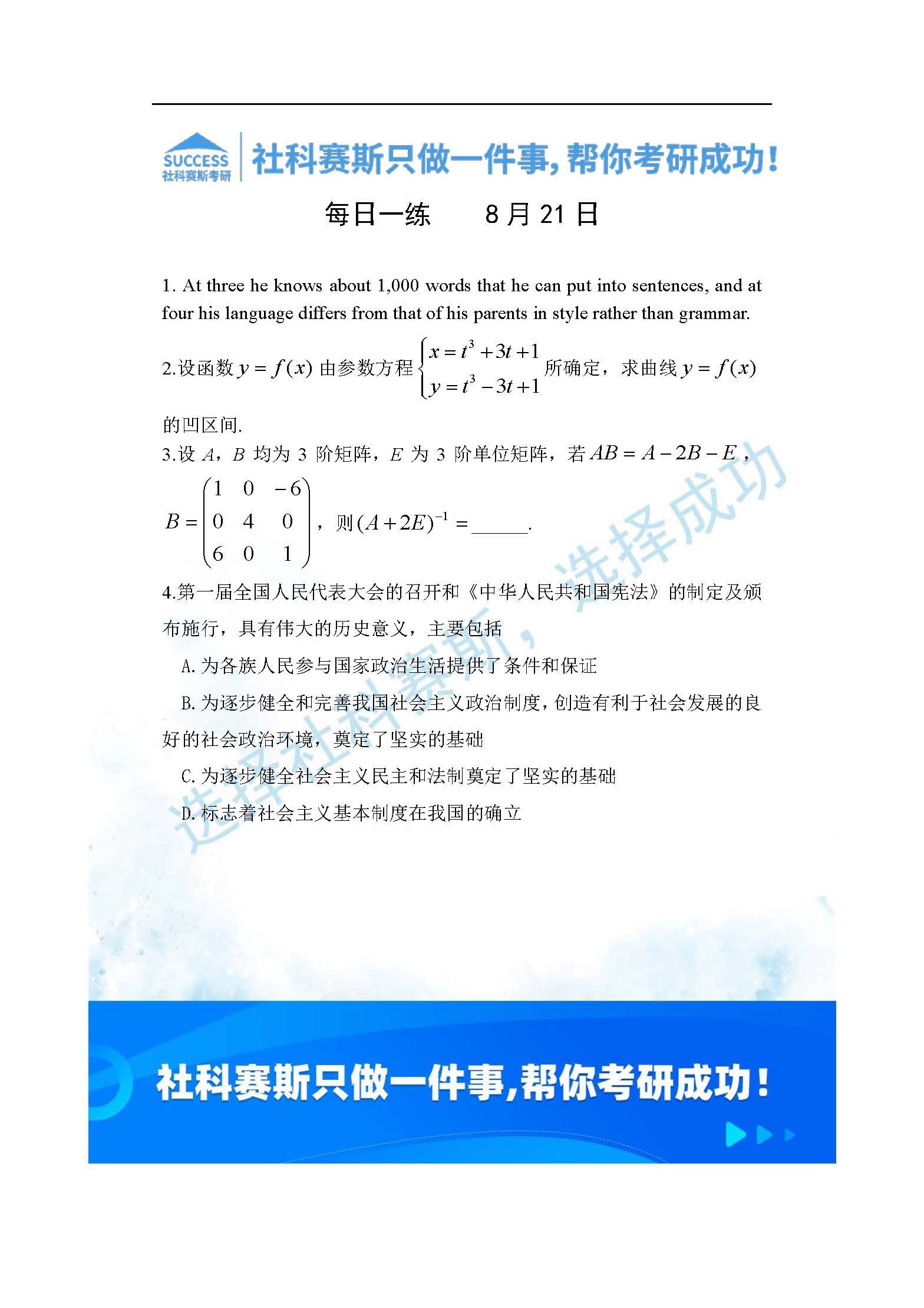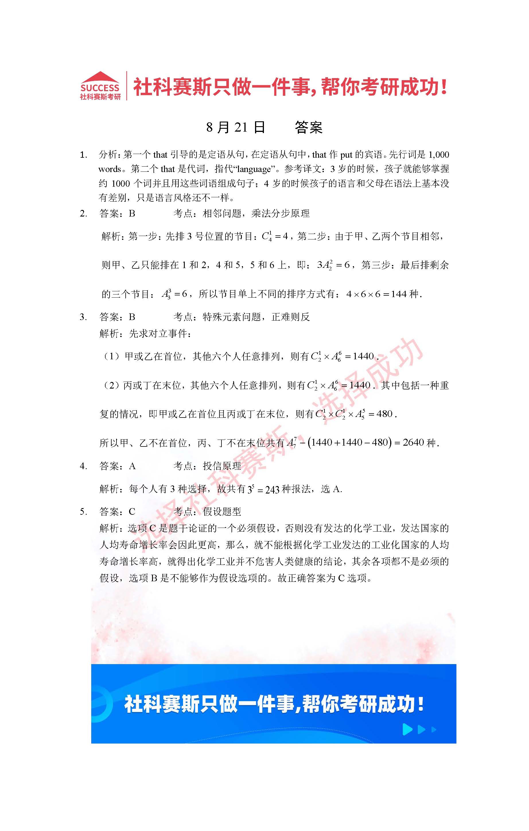 導讀:考研是一場持久戰,保持良好的學習習慣,是能確保復習高效的關鍵。今天社科賽斯MBA備考網小編整理了“2022管理類聯考8月21日每日一練及答案”的內容,希望能對廣大考生有所幫助。