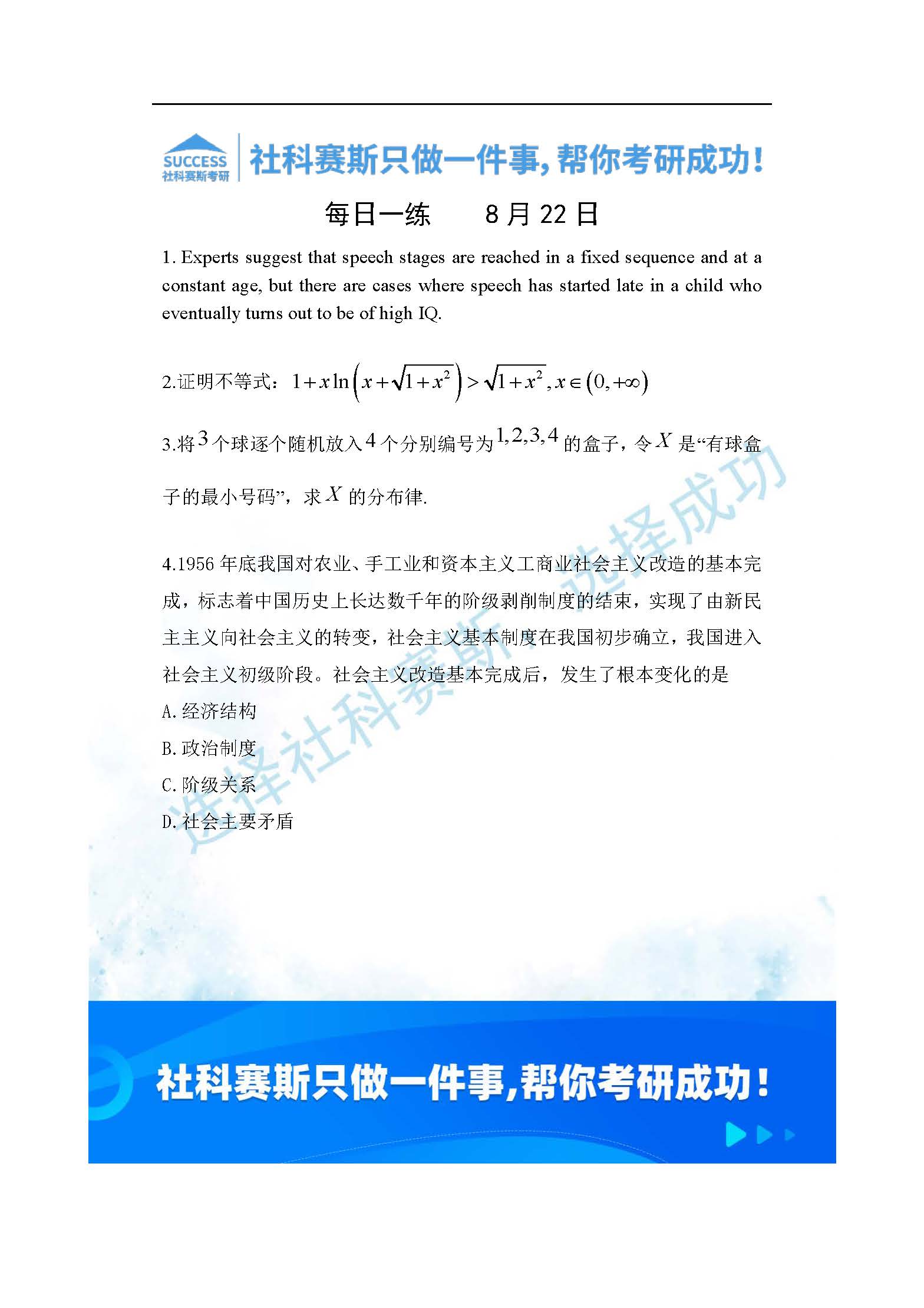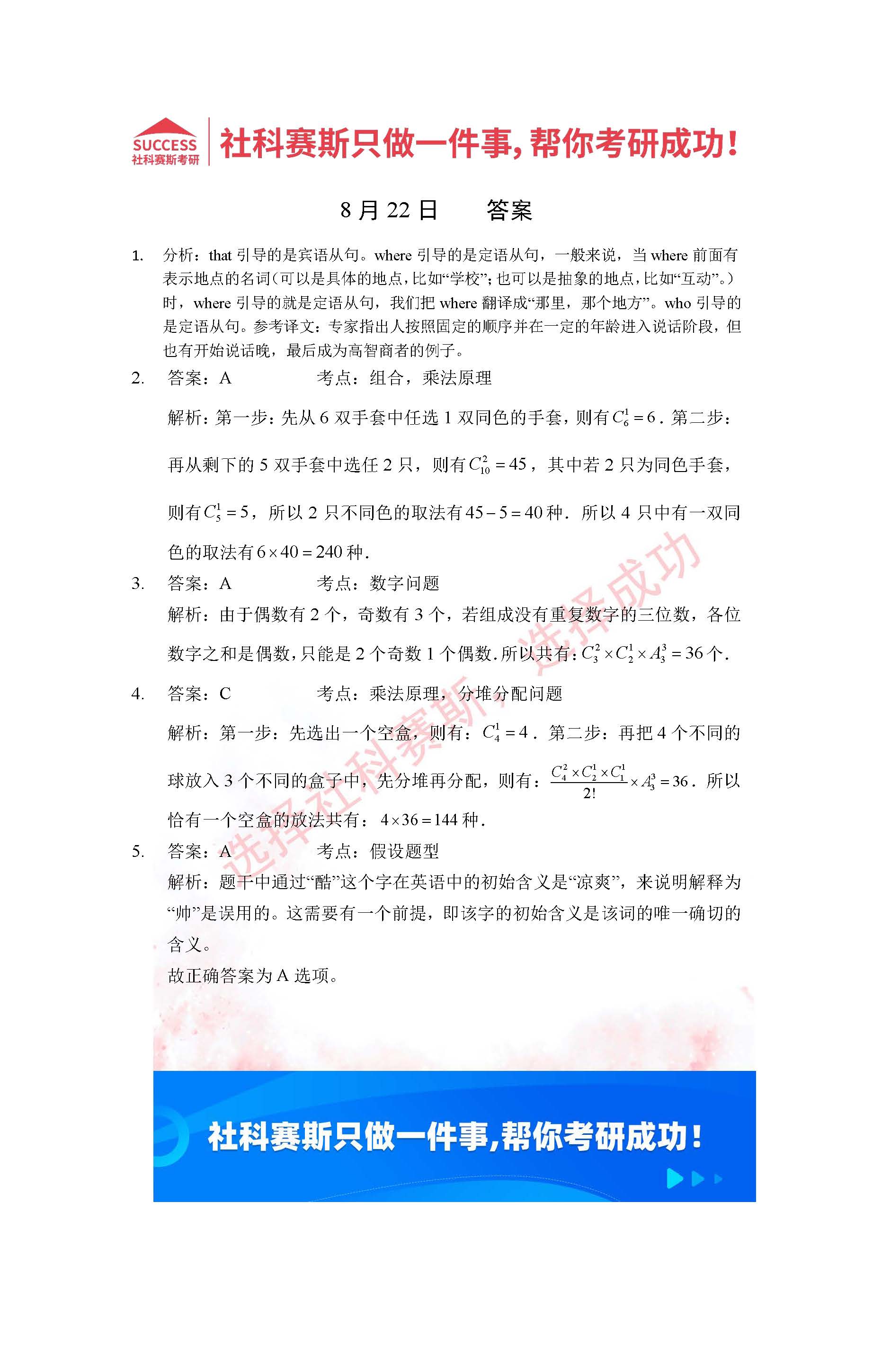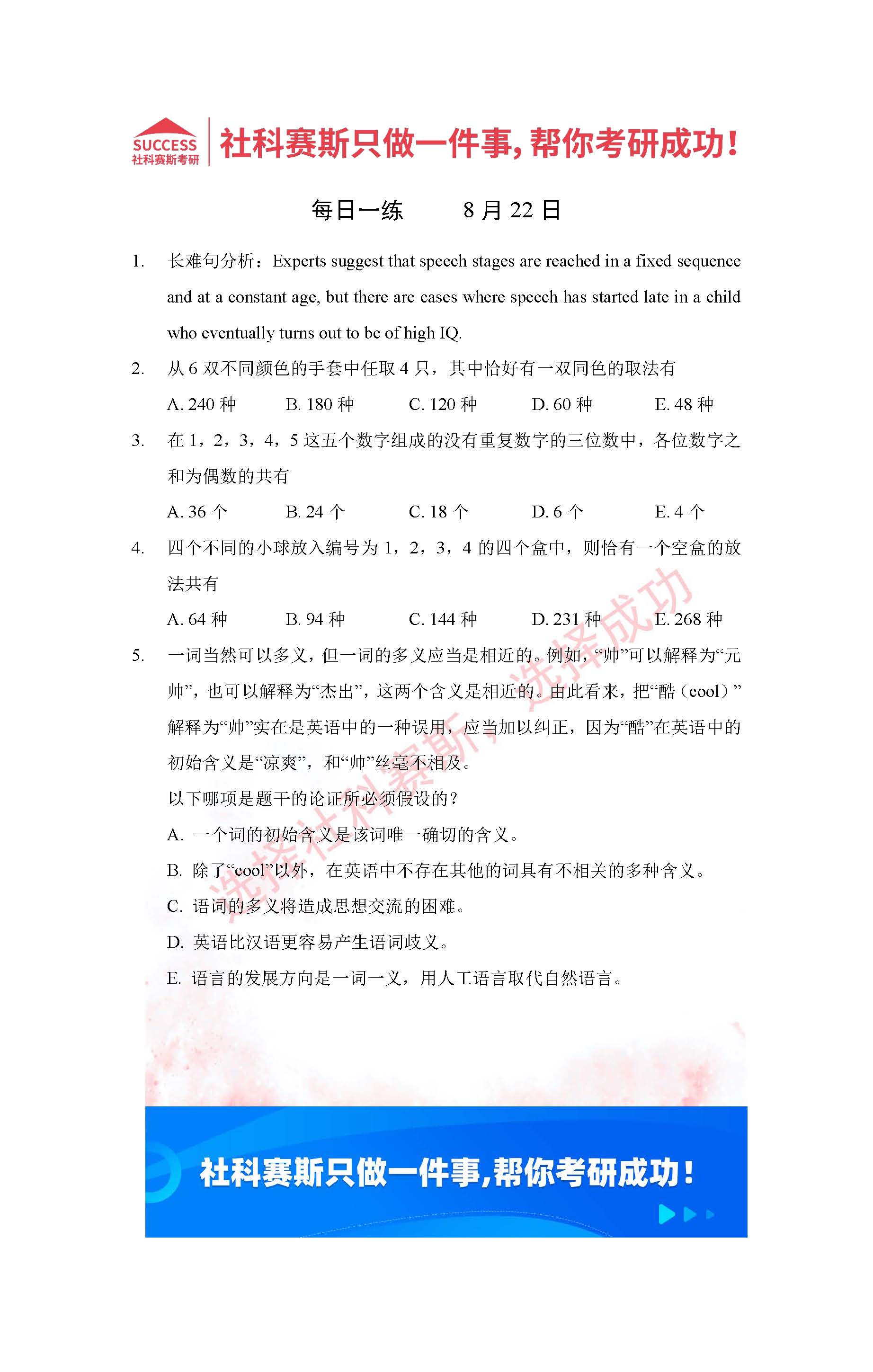 2022管理類聯(lián)考8月22日每日一練及答案”