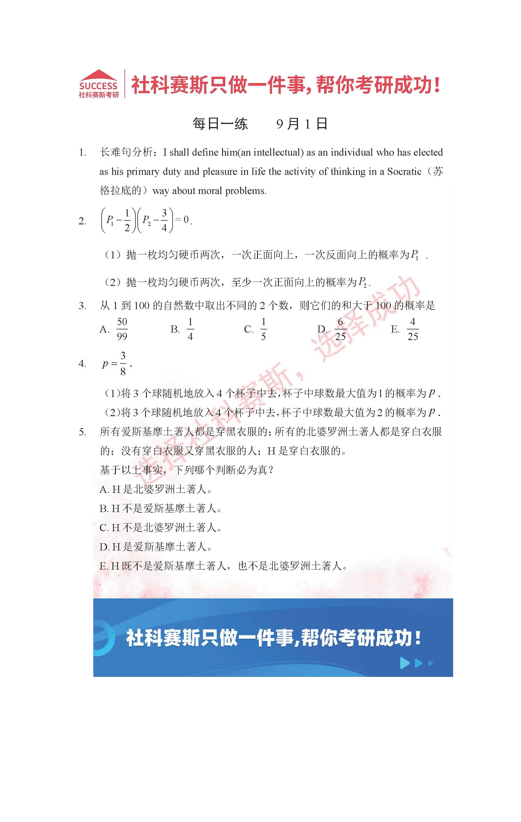 導(dǎo)讀:考研是一場持久戰(zhàn),保持良好的學(xué)習(xí)習(xí)慣,是能確保復(fù)習(xí)高效的關(guān)鍵。今天社科賽斯MBA備考網(wǎng)小編整理了“2022管理類聯(lián)考9月1日每日一練及答案”的內(nèi)容,希望能對廣大考生有所幫助。