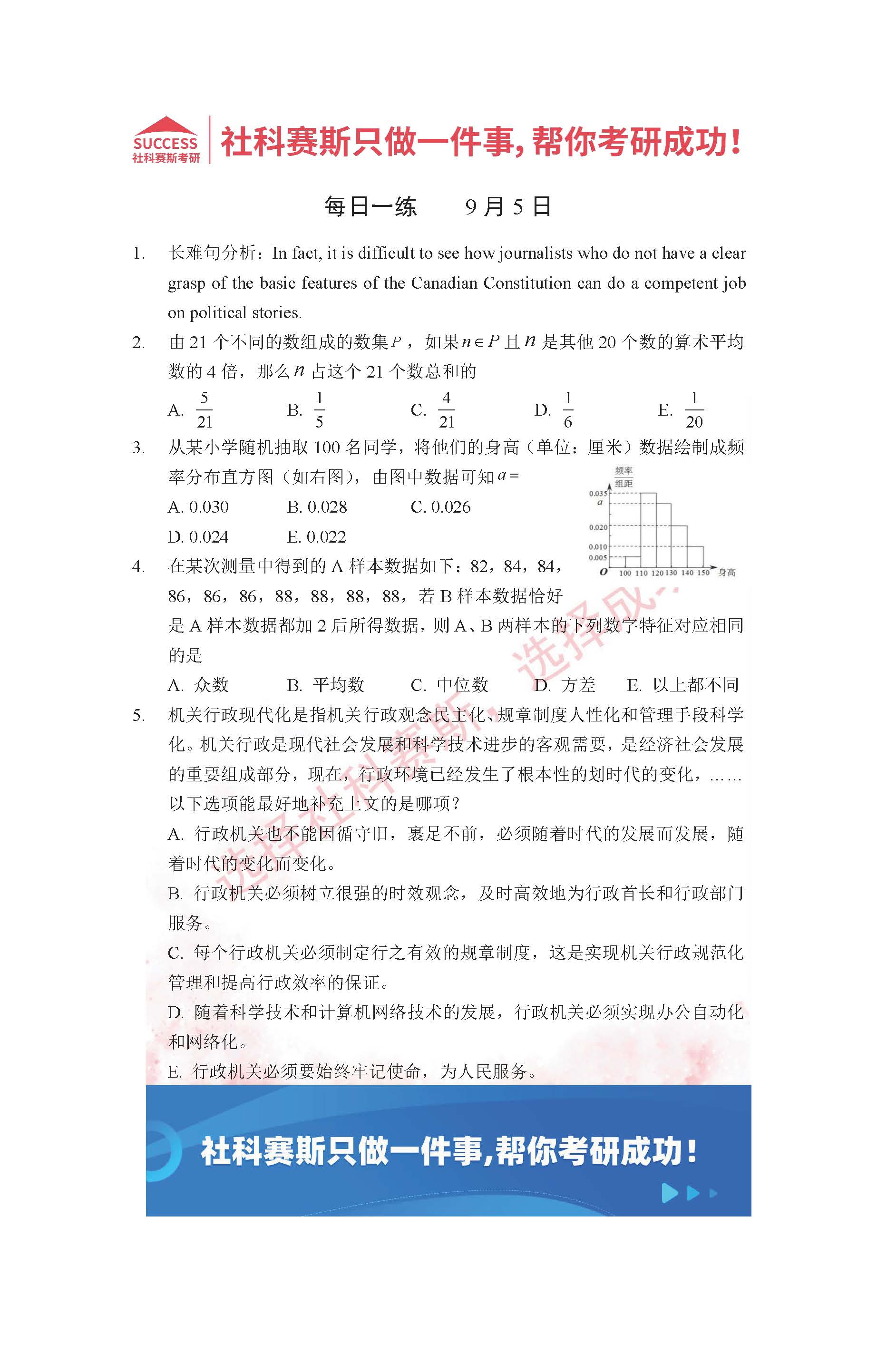 導讀:考研是一場持久戰,保持良好的學習習慣,是能確保復習高效的關鍵。今天社科賽斯MBA備考網小編整理了“2022管理類聯考9月5日每日一練及答案”的內容,希望能對廣大考生有所幫助。