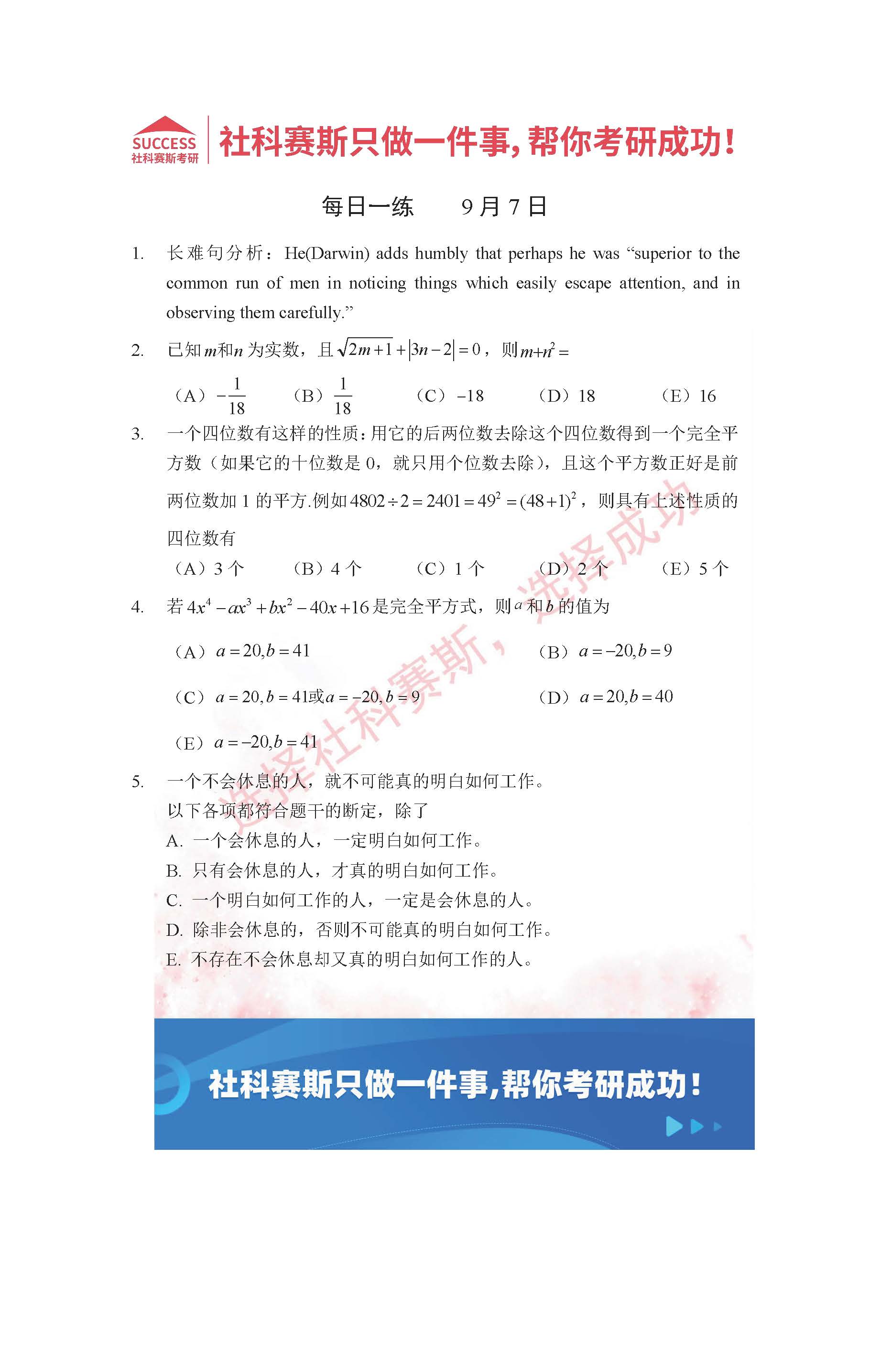 導讀:考研是一場持久戰,保持良好的學習習慣,是能確保復習高效的關鍵。今天社科賽斯MBA備考網小編整理了“2022管理類聯考9月7日每日一練及答案”的內容,希望能對廣大考生有所幫助。