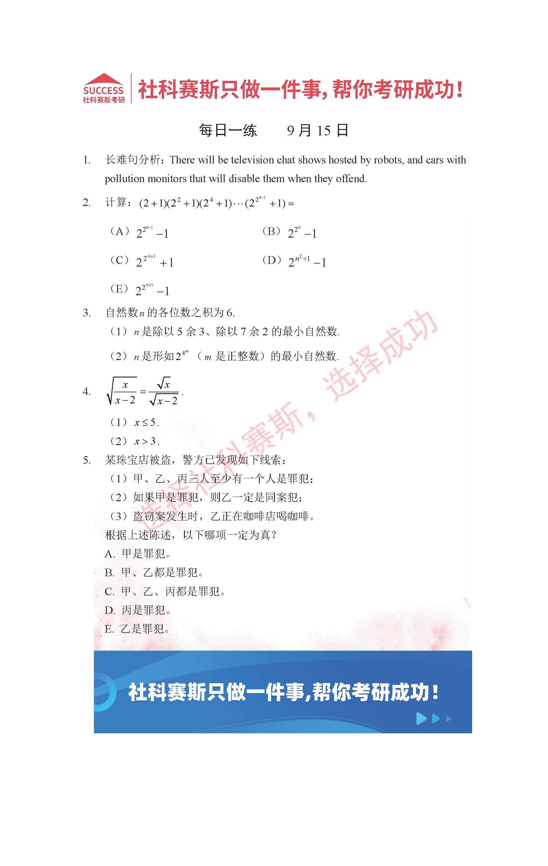 導讀:考研是一場持久戰,保持良好的學習習慣,是能確保復習高效的關鍵。今天社科賽斯MBA備考網小編整理了“2022管理類聯考9月15日每日一練及答案”的內容,希望能對廣大考生有所幫助。