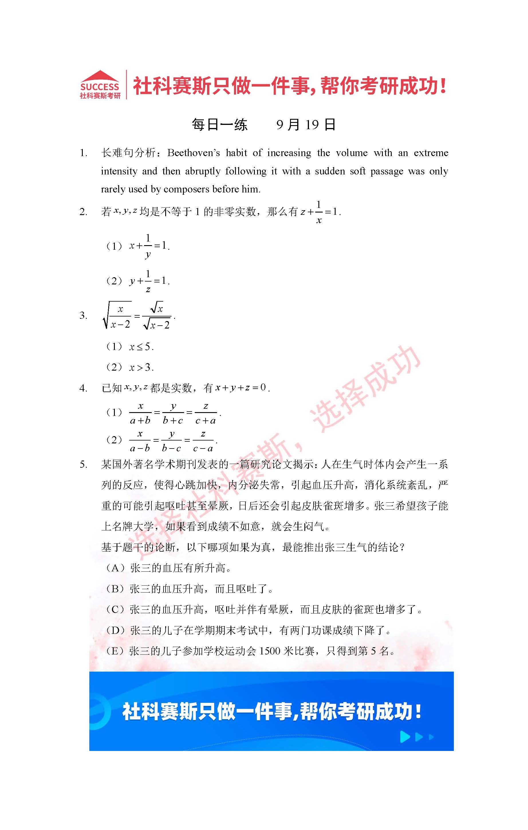 導讀:考研是一場持久戰,保持良好的學習習慣,是能確保復習高效的關鍵。今天社科賽斯MBA備考網小編整理了“2022管理類聯考9月19日每日一練及答案”的內容,希望能對廣大考生有所幫助。
