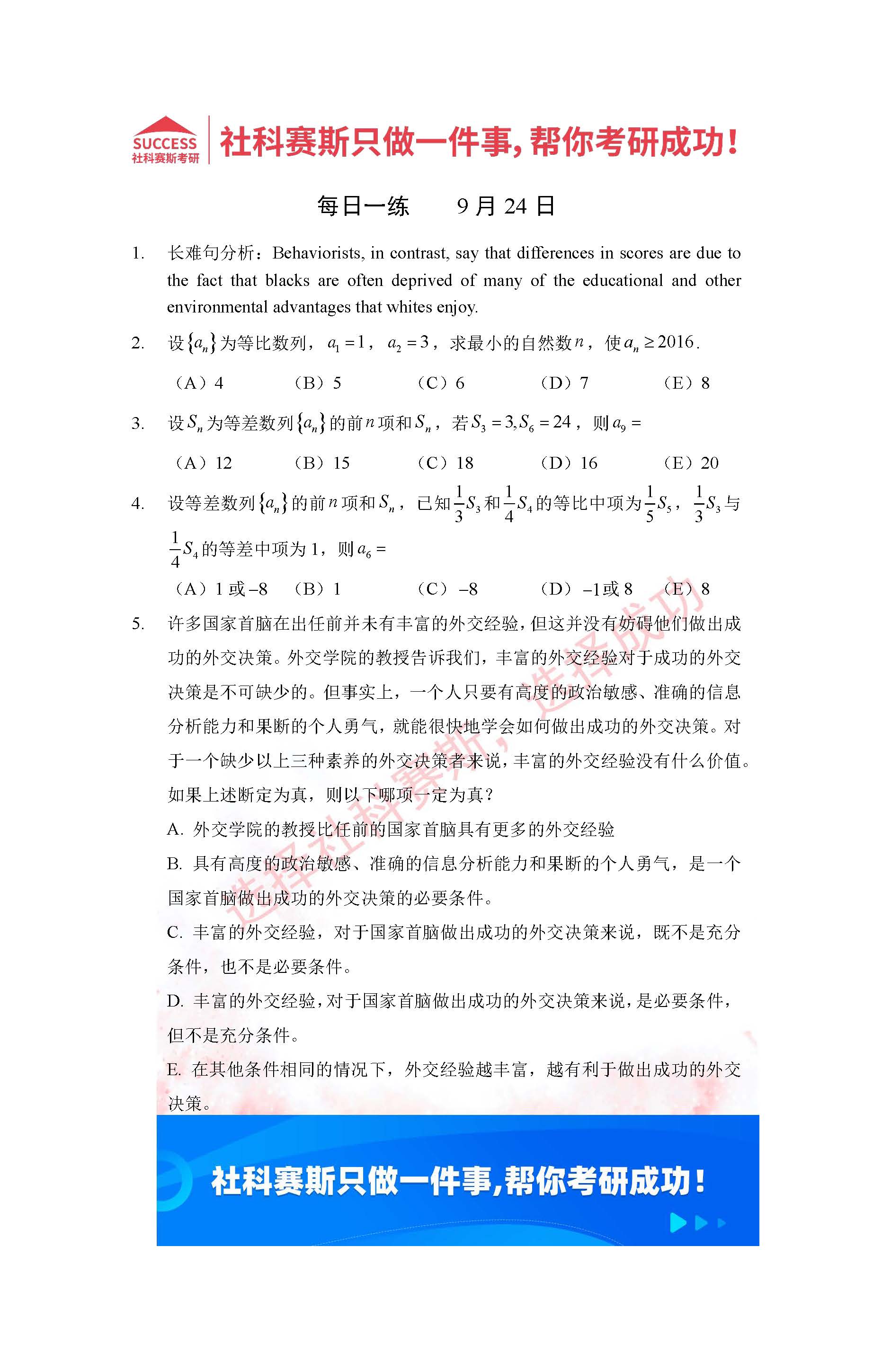 導讀:考研是一場持久戰,保持良好的學習習慣,是能確保復習高效的關鍵。今天社科賽斯MBA備考網小編整理了“2022管理類聯考9月24日每日一練及答案”的內容,希望能對廣大考生有所幫助。