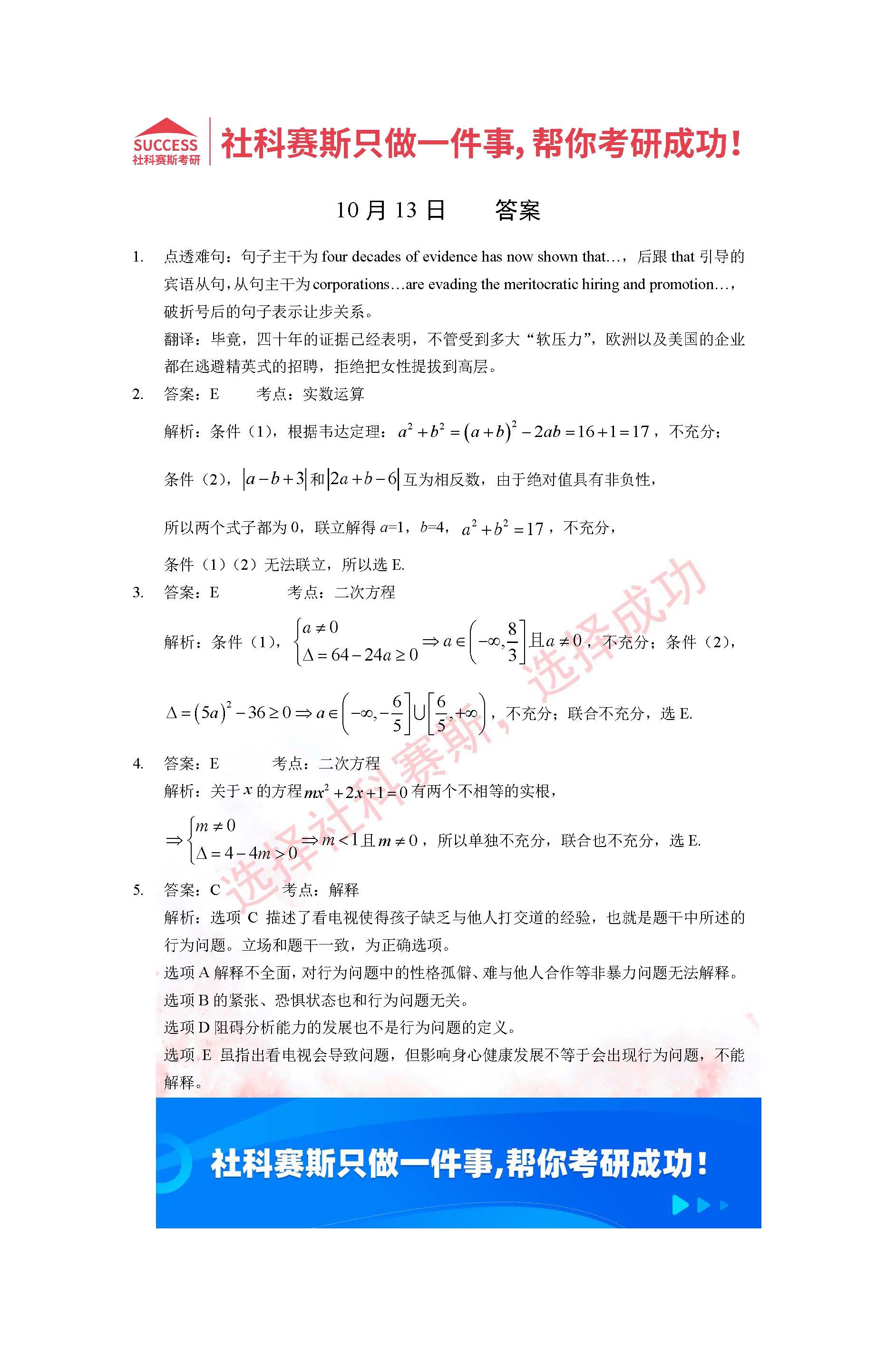 以上就是社科賽斯MBA備考網小編為大家整理2022管理類聯考10月13日每日一練及答案的全部內容,希望各位考生堅持利用起來,更多每日一練內容請持續關注MBA備考網管理類聯考每日一練。