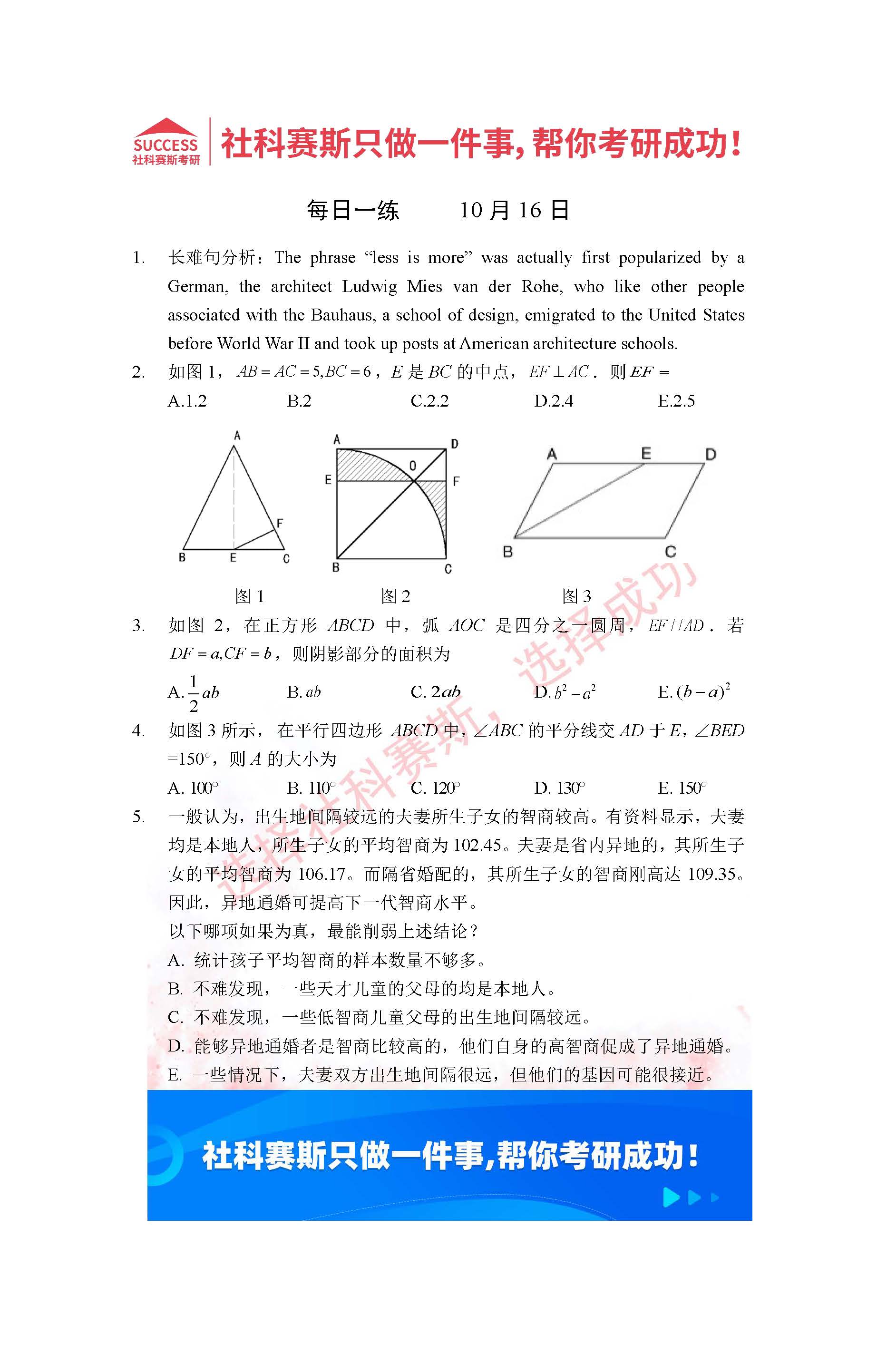 導讀:考研是一場持久戰,保持良好的學習習慣,是能確保復習高效的關鍵。今天社科賽斯MBA備考網小編整理了“2022管理類聯考10月16日每日一練及答案”的內容,希望能對廣大考生有所幫助。