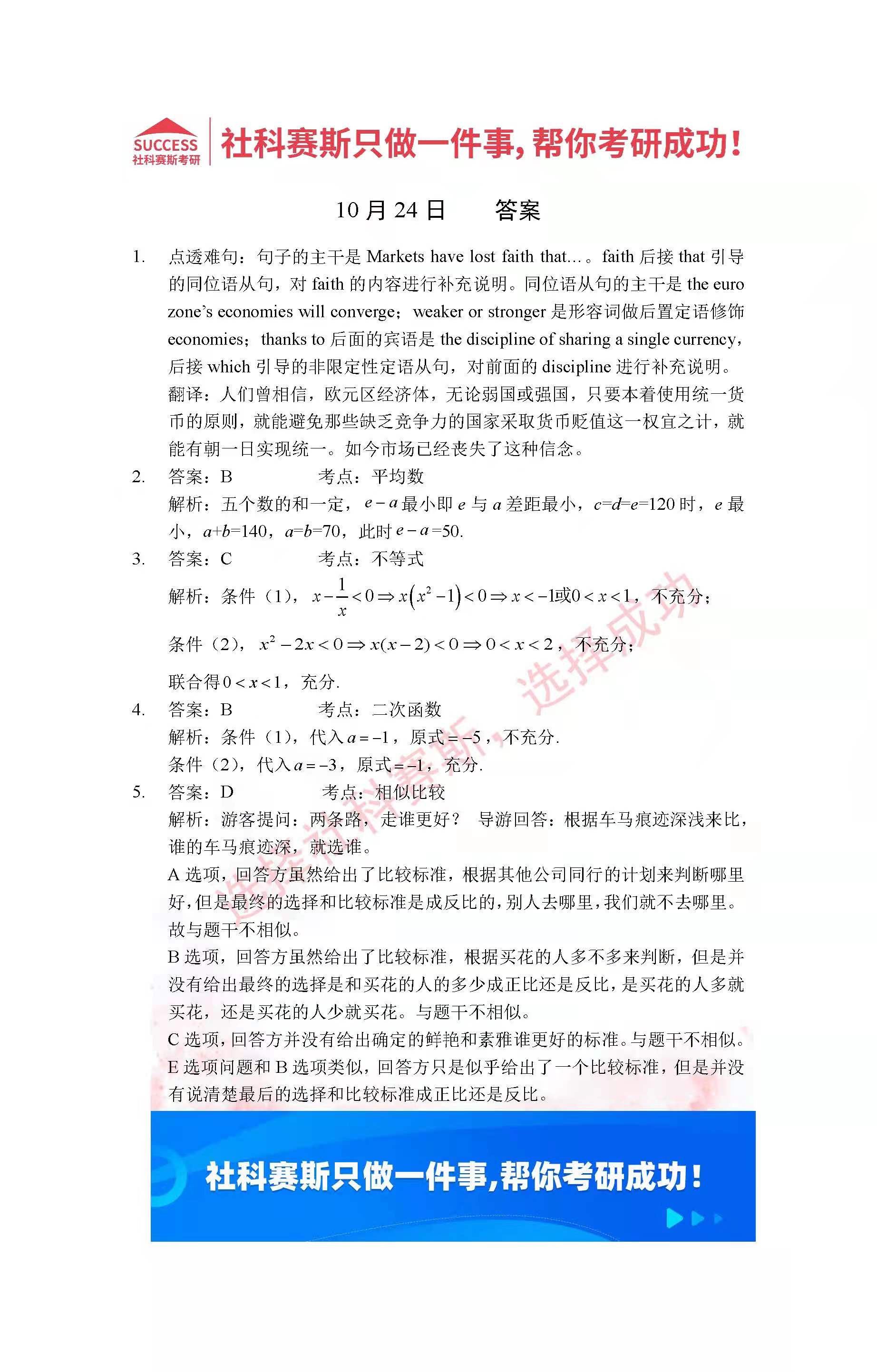 首頁> 管理類聯(lián)考每日一練 > 2022管理類聯(lián)考10月24日每日一練及答案