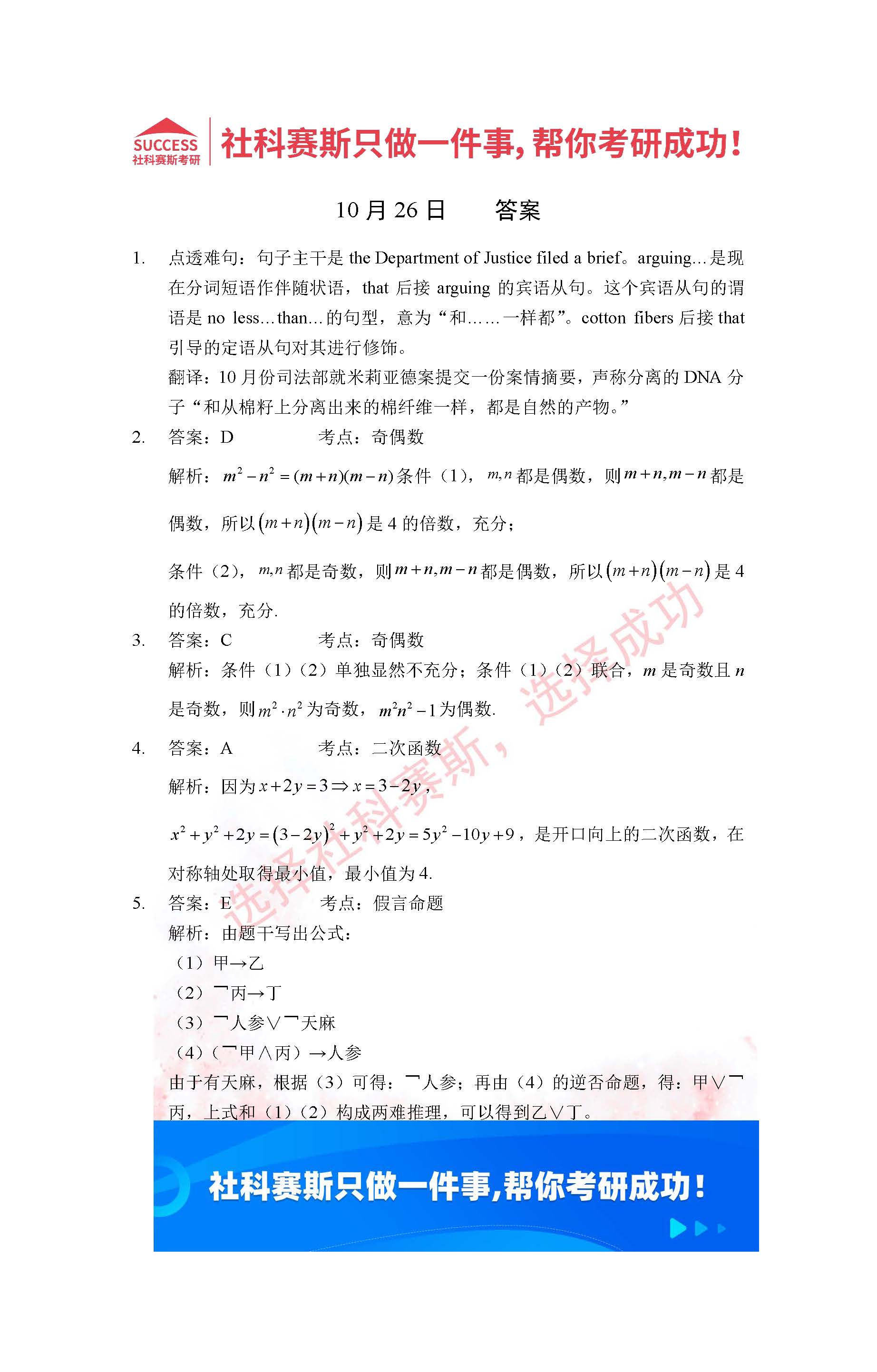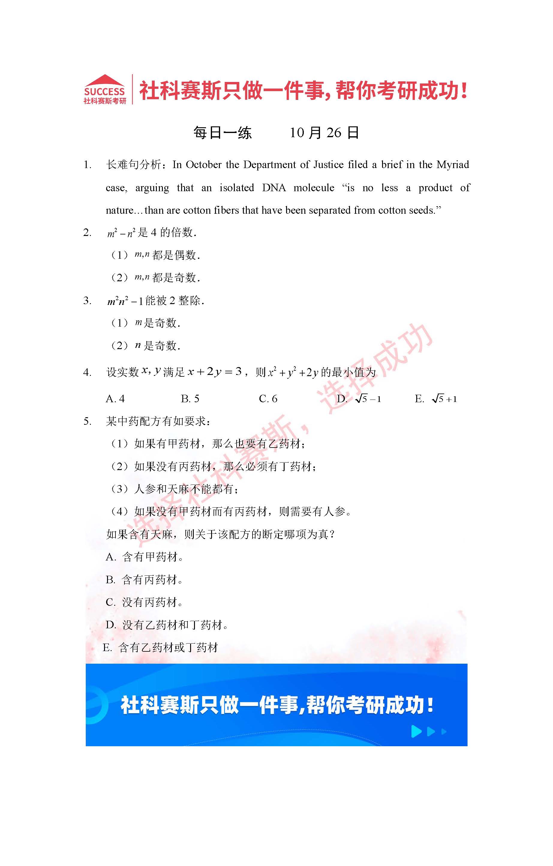 導讀:考研是一場持久戰,保持良好的學習習慣,是能確保復習高效的關鍵。今天社科賽斯MBA備考網小編整理了“2022管理類聯考10月26日每日一練及答案”的內容,希望能對廣大考生有所幫助。