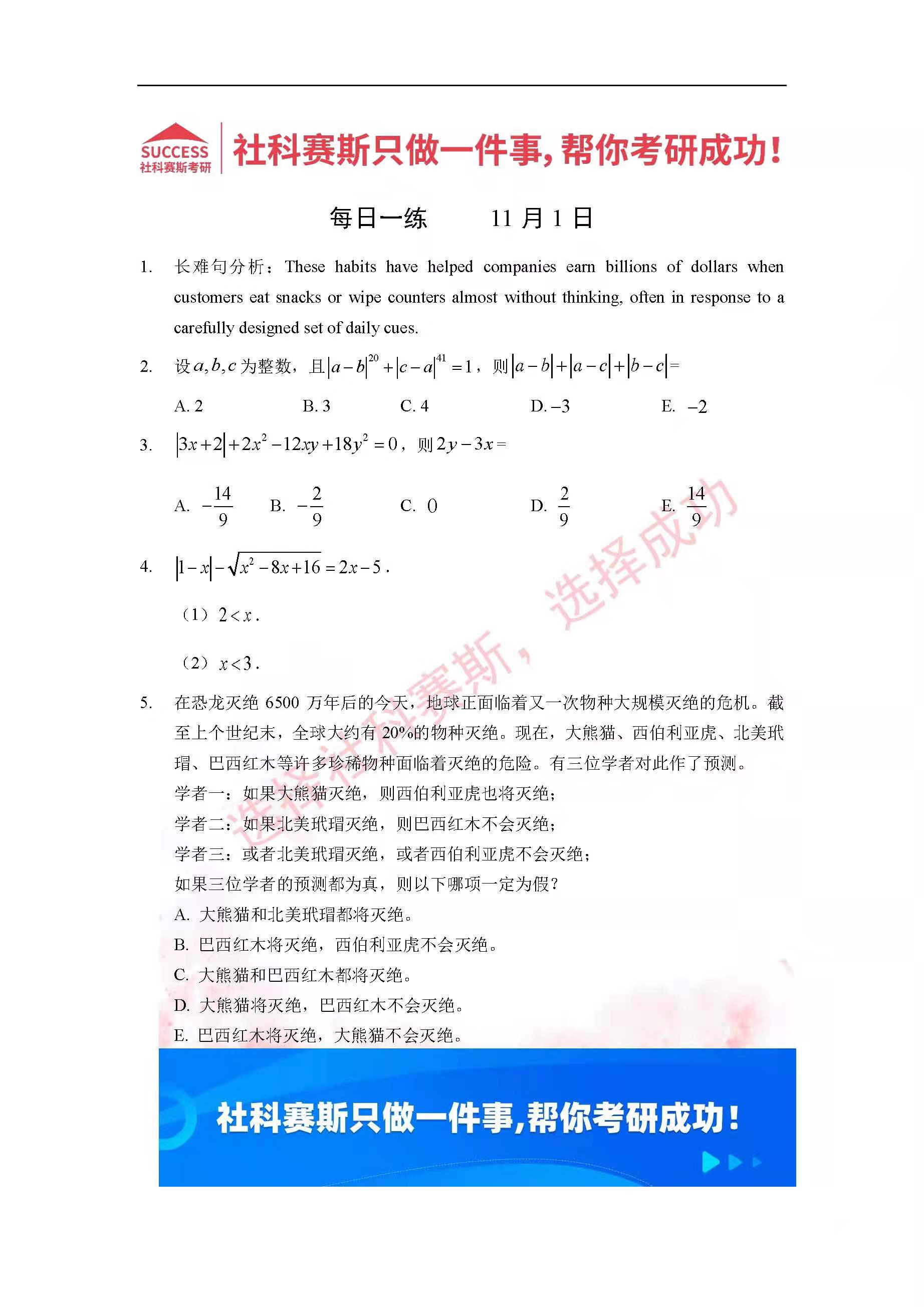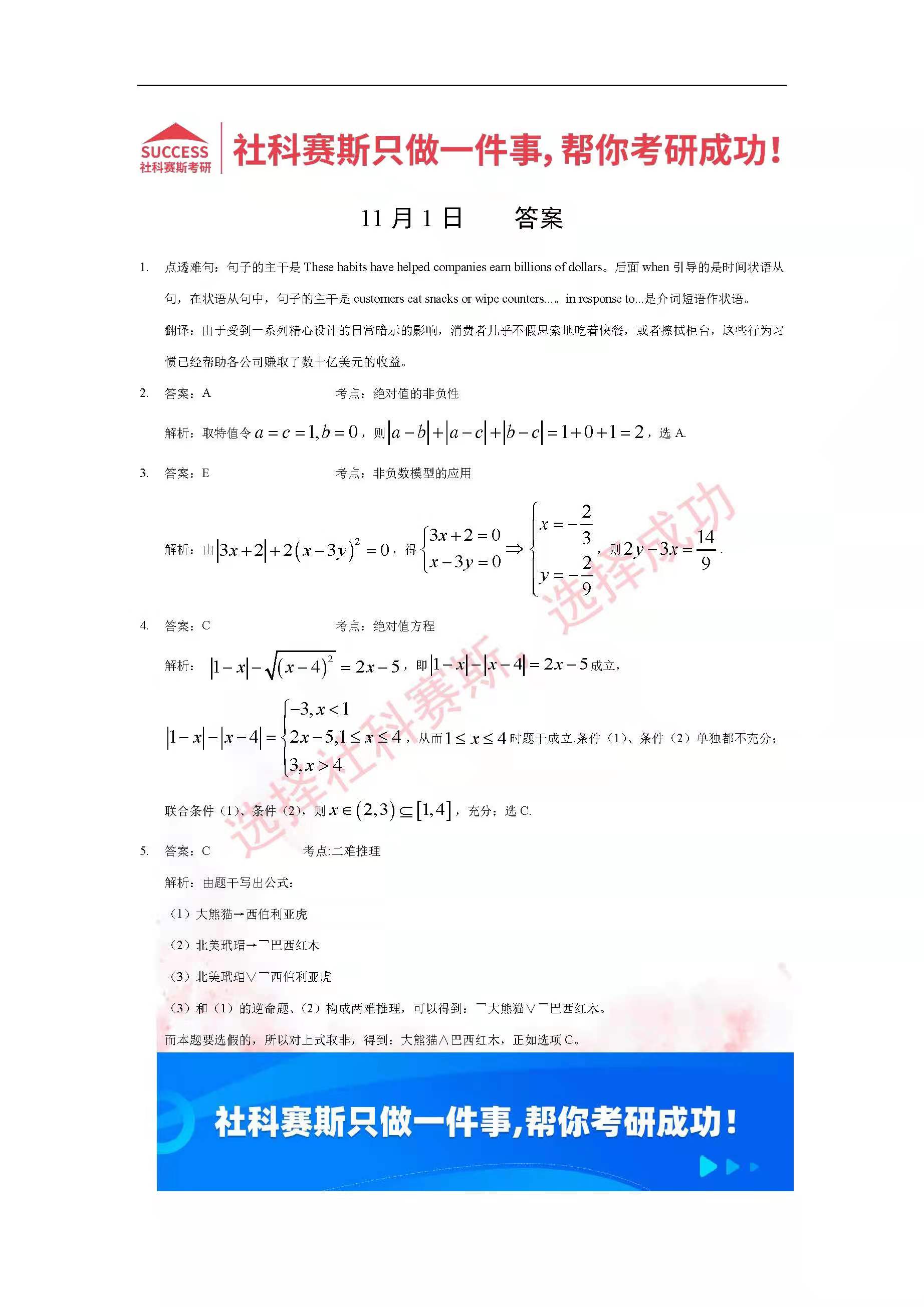 導(dǎo)讀:考研是一場持久戰(zhàn),保持良好的學(xué)習(xí)習(xí)慣,是能確保復(fù)習(xí)高效的關(guān)鍵。今天社科賽斯MBA備考網(wǎng)小編整理了“2022管理類聯(lián)考11月1日每日一練及答案”的內(nèi)容,希望能對廣大考生有所幫助。