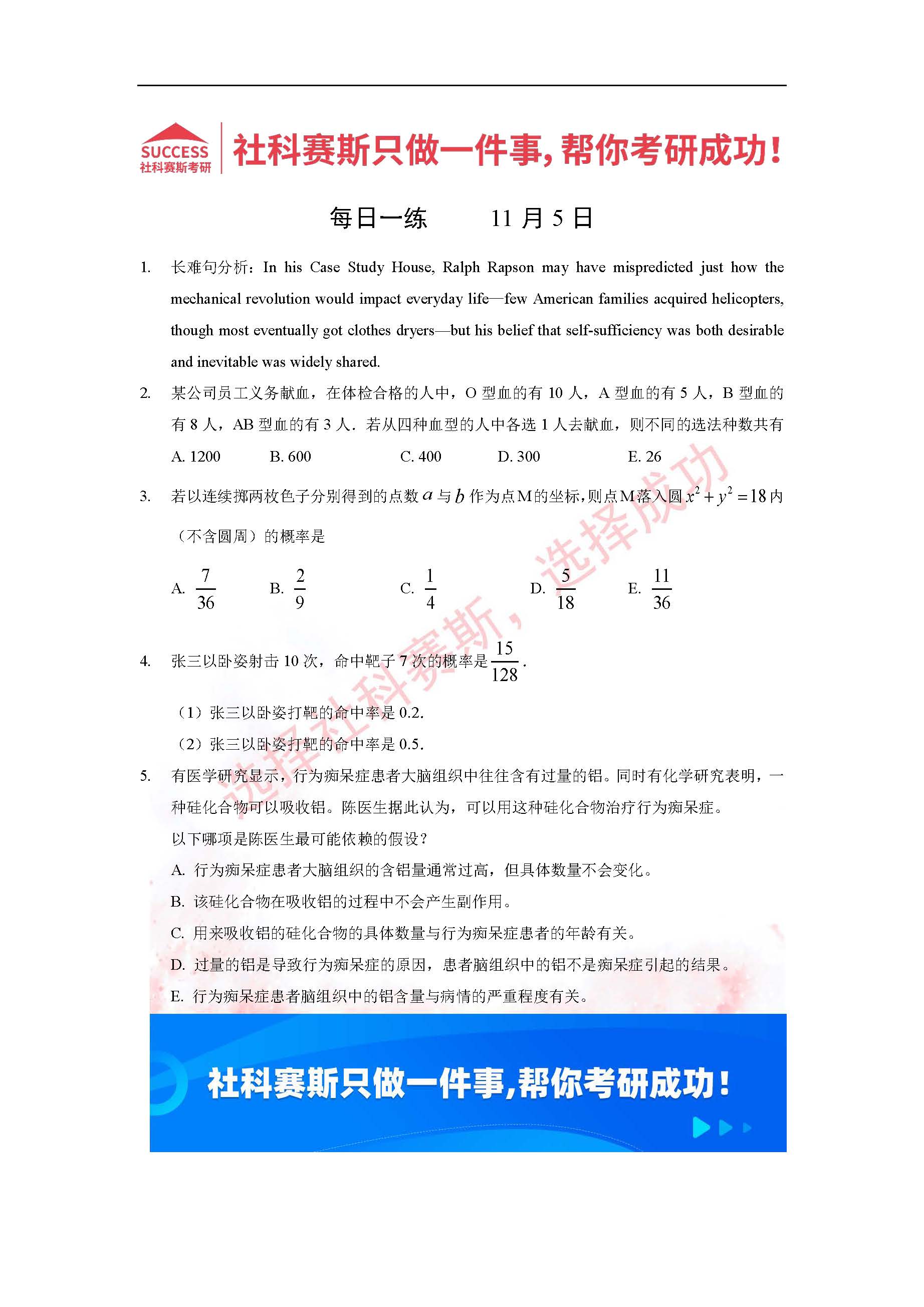 以上就是社科賽斯MBA備考網小編為大家整理2022管理類聯考11月5日每日一練及答案的全部內容,希望各位考生堅持利用起來,更多每日一練內容請持續關注MBA備考網管理類聯考每日一練。