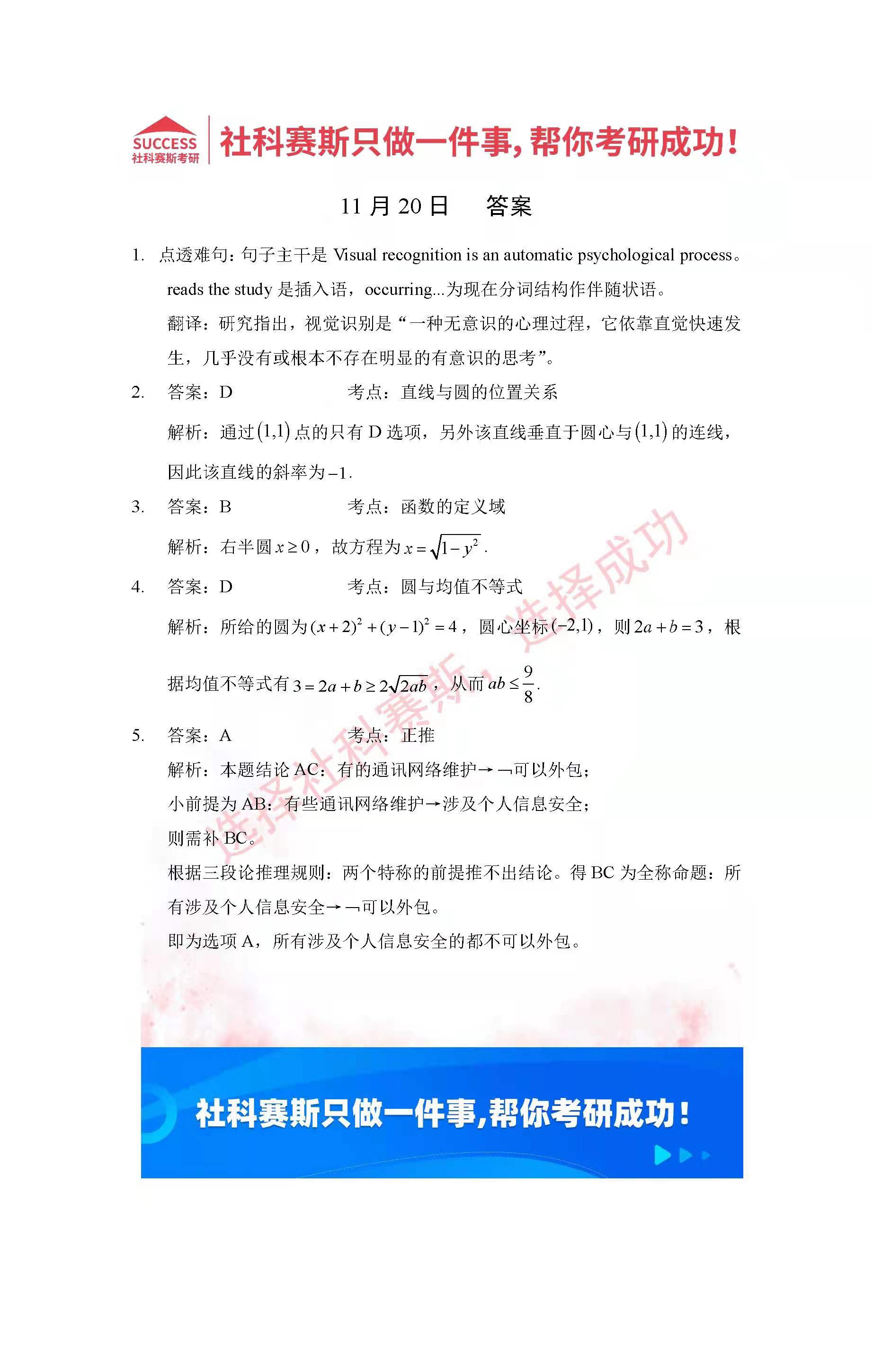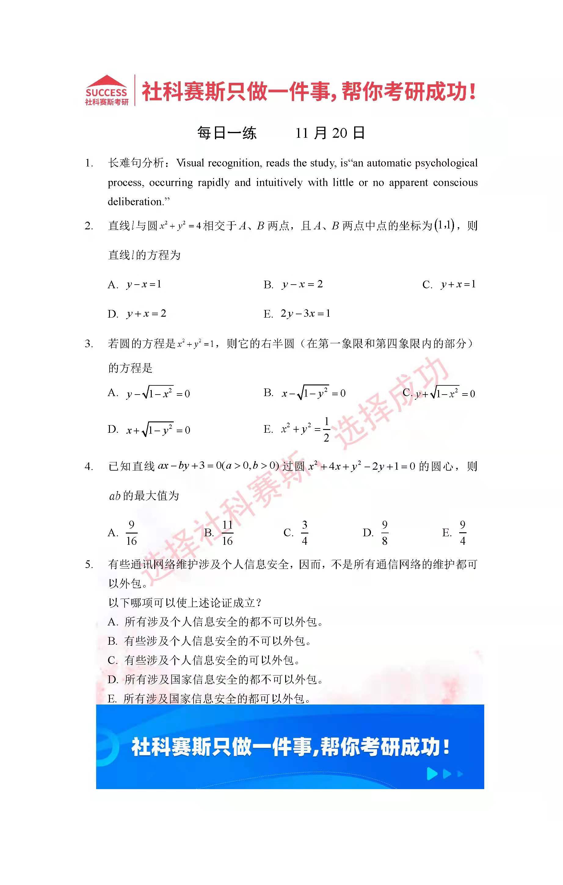 導(dǎo)讀:考研是一場(chǎng)持久戰(zhàn),保持良好的學(xué)習(xí)習(xí)慣,是能確保復(fù)習(xí)高效的關(guān)鍵。今天社科賽斯MBA備考網(wǎng)小編整理了“2022管理類聯(lián)考11月20日每日一練及答案”的內(nèi)容,希望能對(duì)廣大考生有所幫助。