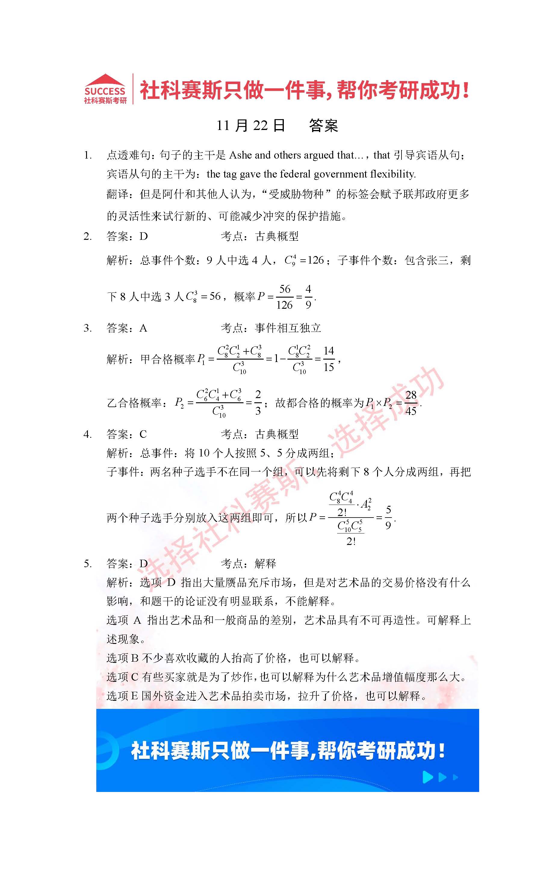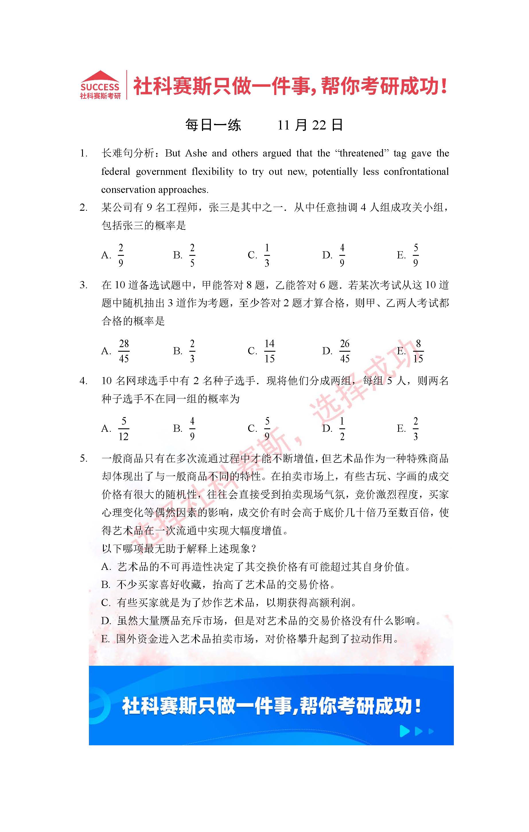 以上就是社科賽斯MBA備考網小編為大家整理2022管理類聯考11月22日每日一練及答案的全部內容,希望各位考生堅持利用起來,更多每日一練內容請持續關注MBA備考網管理類聯考每日一練。